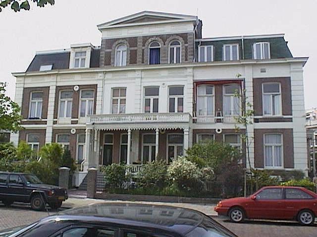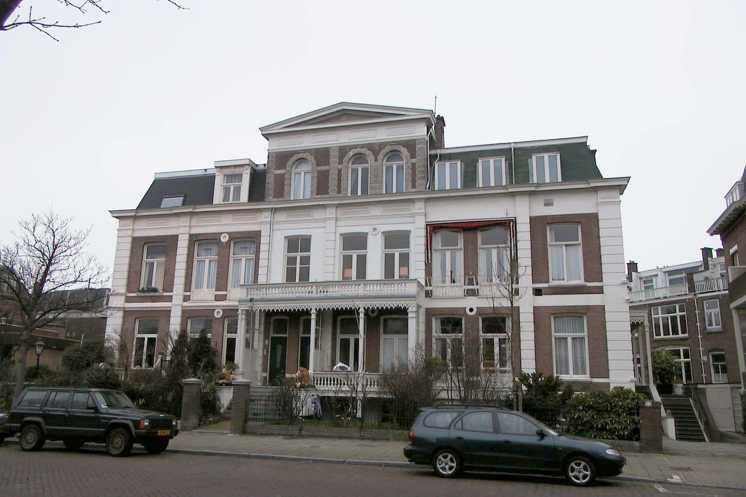 Op een duintop gebouwd dubbel herenhuis op rechthoekige plattegrond, bestaande uit een souterrain en twee bouwlagen onder een plat dak, drie vensterassen breed. In het ontwerp van de drie dubbele herenhuizen is de voorgevel van het middendeel benadrukt door deze op te trekken tot een Vlaamse topgevel met driehoekig fronton. De bakstenen gevel is geleed door geblokte lisenen. Het gepleisterde hoofdgestel is gekornist en voorzien van panelen in het fries. De Vlaamse topgevel bevat rondboogvensters, omgeven door een geblokte lijst, geblokte lisenen en een hoofdgestel met panelen in het fries. Op beide bouwlagen bevindt zich over de breedte een houten veranda, voorzien van een balustrade en een gesneden houten sierlijst langs de bovenrand, rustend op houten pijlers. Aan de linkerkant biedt een brede natuurstenen trap toegang tot de beide ingangen. De trap wordt geflankeerd door gietijzeren leeuwen. De T-vormige stolpramen bezitten alleen op de eerste bouwlaag glas- in-lood bovenlichten. De achtergevel is op de eerste bouwlaag voorzien van een veranda met een gesneden houten sierlijst, waarboven een balkon die op een houten pijler rust. De gevel wordt bekroond door een gepleisterde Vlaamse topgevel met driehoekig fronton. Het interieur bevat onder meer in eclectische stijl geornamenteerde stucplafonds, marmeren schoorsteenmantels en een trappenhuis uit de bouwtijd. De tuin wordt van de straat gescheiden door een gietijzeren hek op een lage bakstenen voet, voorzien van bakstenen hekpijlers met gepleisterde banden en een geprofileerde dekplaat.