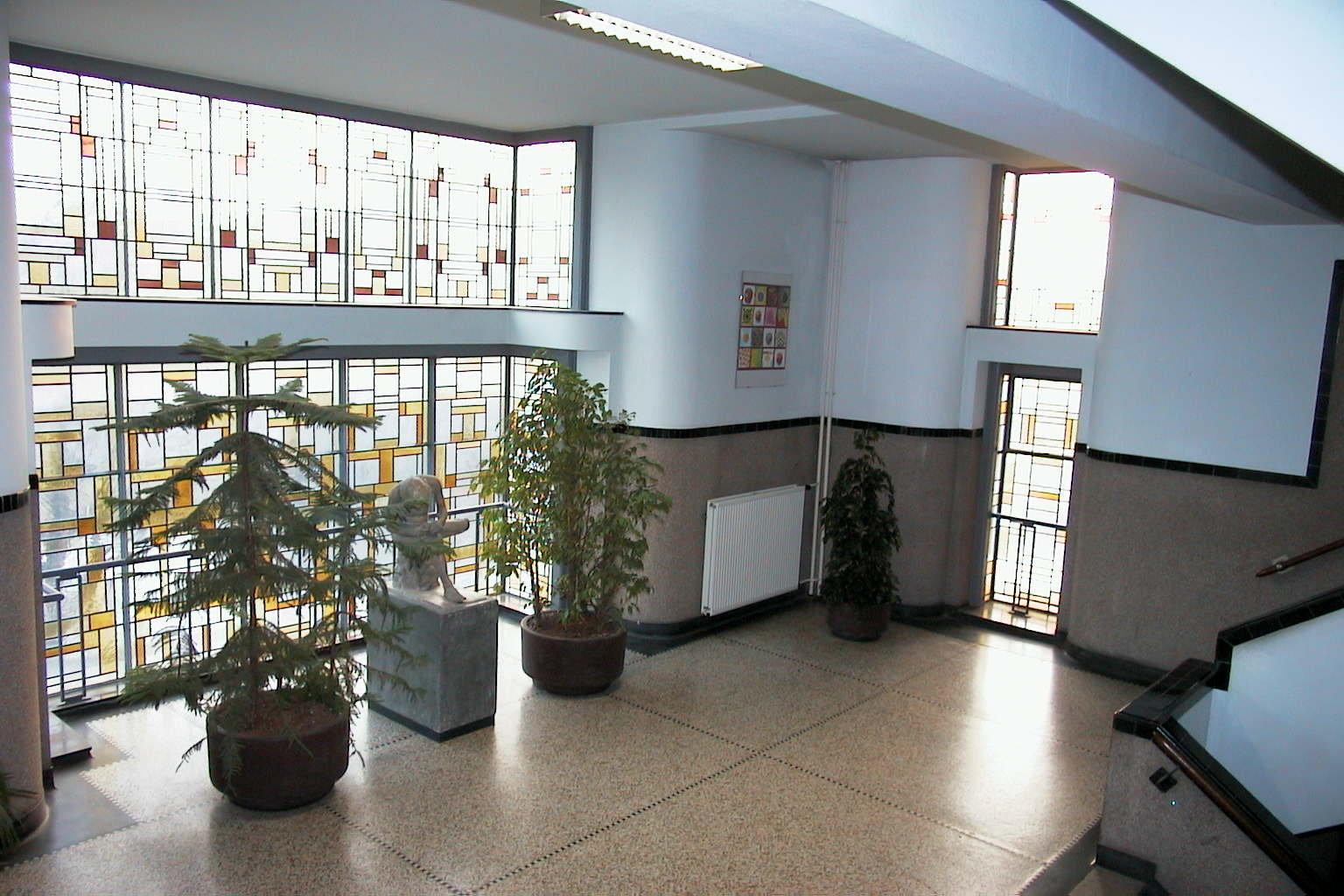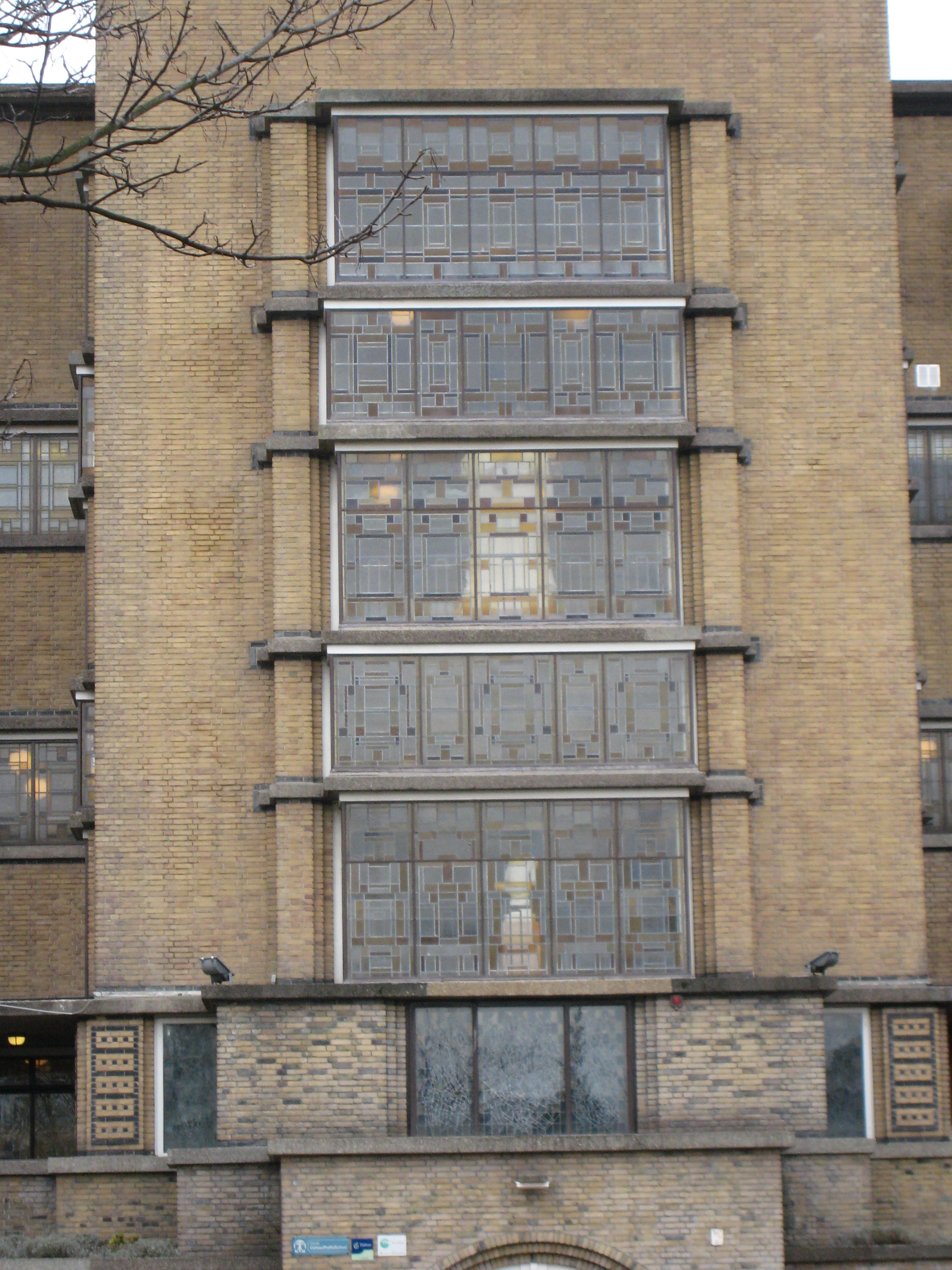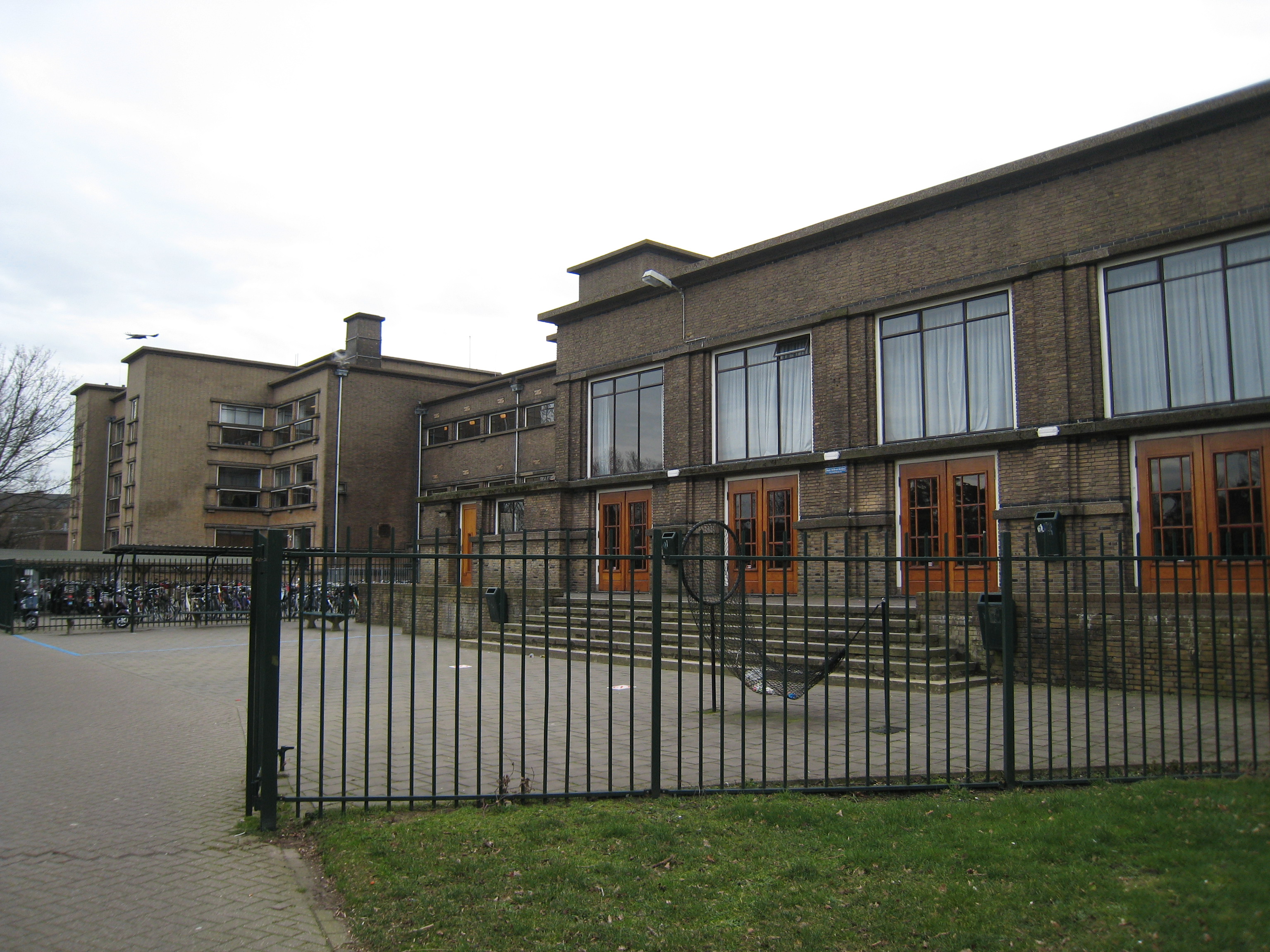 Vrijstaand schoolgebouw met twee bijbehorende personeelswoningen, gebouwd in 1930-1933 in de Nieuwe Haagse School stijl. Het gebouw is ontworpen door J.J. Brandes en D.C. van der Zwart in 1929.