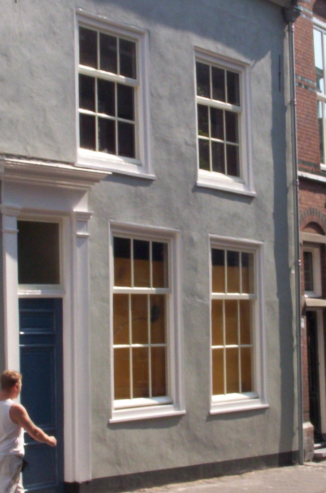 Onderdeel van het PAND Westeinde 36, 18e-eeuwse gevel, ingangsomlijsting met pilasters en kroonlijst.