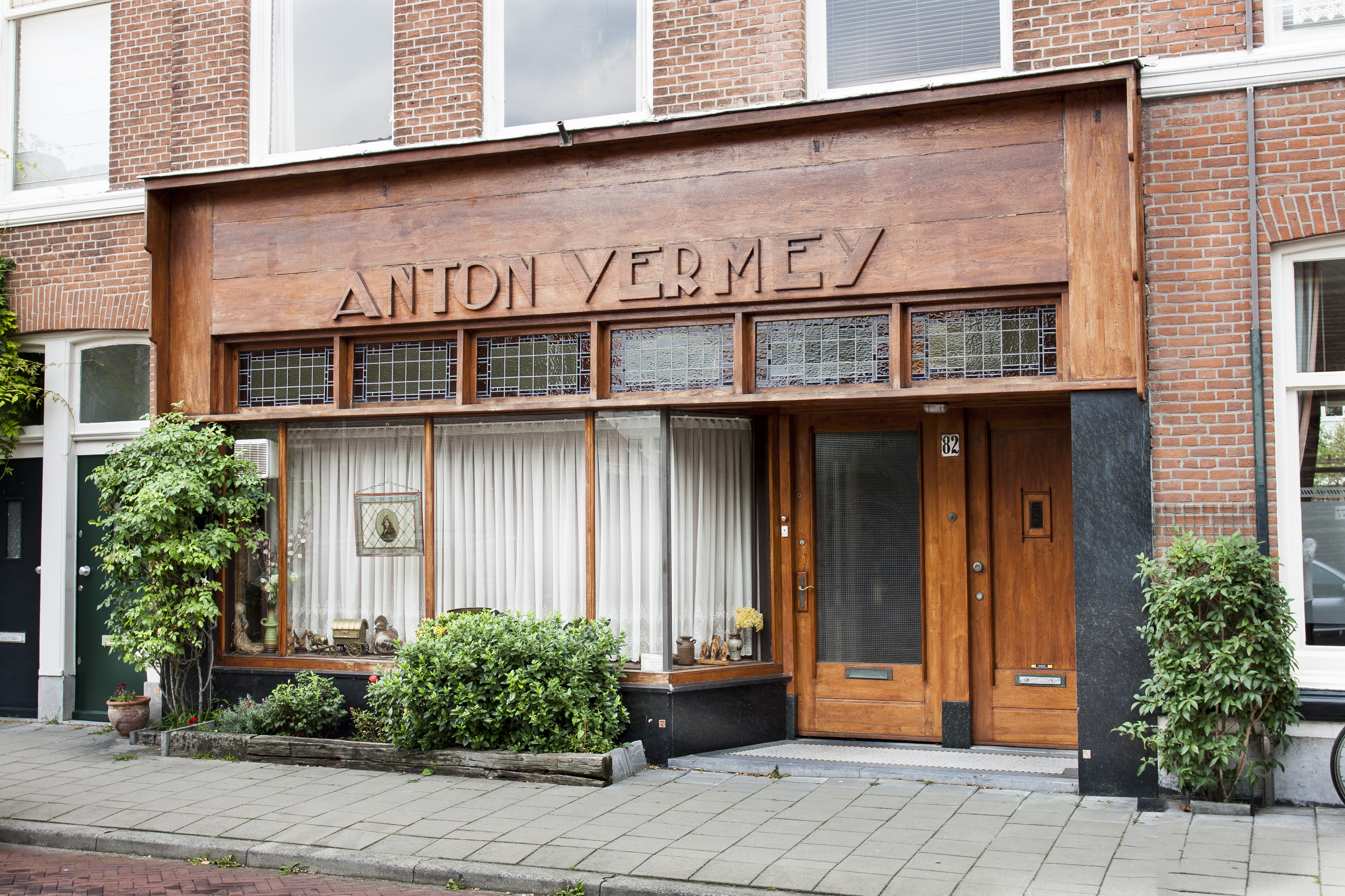 Het oorspronkelijk als woonhuis gebouwde pand dateert uit het laatste kwart van de negentiende eeuw en vormt onderdeel van de in eclectische stijl opgetrokken straatwand. In 1930 liet kapper A.M.P. Vermeij de benedenwoning tot winkel verbouwen. De winkel kreeg een brede pui van lichtbruin gevernist hout met zwart marmeren plint. De vormgeving van de winkelpui is kenmerkend voor de op de art deco geïnspireerde opzet in strakke en sobere vormgeving met boven de etalage een brede houten fries met omkasting waarin zes bovenlichten met glas in lood zijn opgenomen. Op het fries is in losse houten belettering de naam Anton Vermeij aangebracht. De portiek ter rechterzijde heeft toegangen tot de winkel en de bovenwoning. De vloer is van granito met kenmerkende zwart-wit geblokte bies. Bijzonder is dat in de portiek nog de reclameplaat van de kapperswinkel bewaard is gebleven van zwart marmer glas. De in het glas uitgefreesde letters zijn verguld.