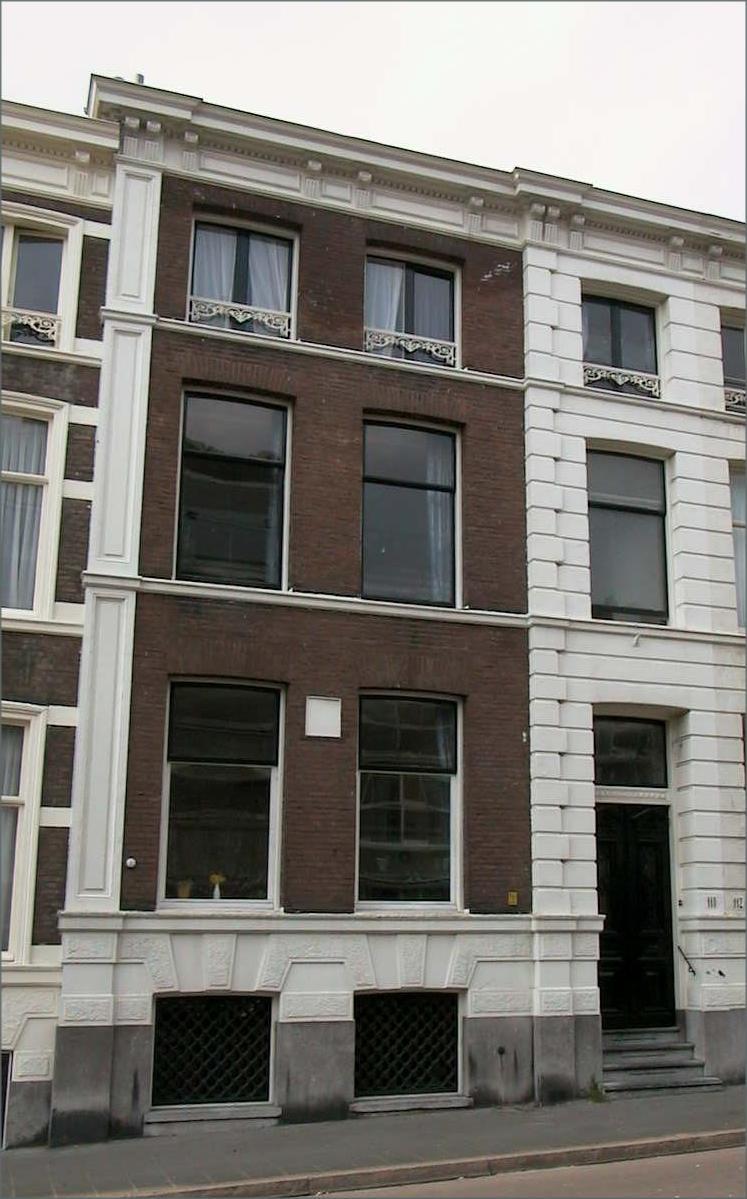 Herenhuis op rechthoekige plattegrond, bestaande uit een souterrain en drie bouwlagen onder een plat dak. De bouwlagen worden van elkaar gescheiden door geprofileerde, gepleisterde cordonlijsten. De bakstenen lijstgevel is drie vensterassen breed, waarvan de rechter als risaliet is behandeld en bezit een hardstenen plint. Het souterrain is voorzien van een geblokte bepleistering met rustica-effect. De hoek van de gevel wordt gemarkeerd door een pilaster met verdiepte velden. Het risaliet vormt het twee assen brede middendeel van de beide als eenheid ontworpen huizen en bezit een geblokte bepleistering. De in het risaliet geplaatste ingangspartij heeft een deur met rijk gesneden panelen en siersmeedijzer, een deurkalf met diamantkopjes en een bovenlicht. De deur is bereikbaar via een hardstenen trapje. Op de eerste en tweede bouwlaag bevinden zich schuifvensters, op de derde stolpramen. De gekoppelde souterrainvensters zijn voorzien van gietijzeren roosters. Voor de stolpramen zijn gietijzeren raamhekjes geplaatst. Het gekorniste hoofdgestel heeft een gepleisterd fries met rechthoekige panelen en een tandlijstje. De kroonlijst wordt gedragen door paarsgewijs geplaatste triglyfconsoles.
