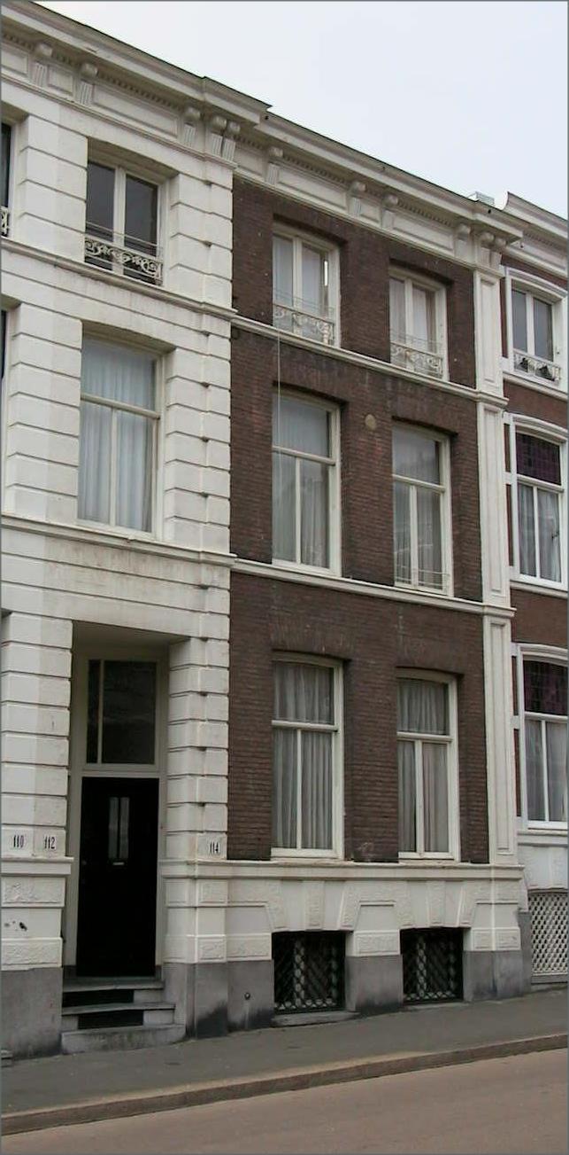 Herenhuis uit 1888-1889, gebouwd door de aannemers G. van der Vliet en J.F. van der Vliet in eclectische bouwstijl. Het herenhuis vormt een symmetrische eenheid met het belendende pand Bankastraat 110. Tevens vormt het onderdeel van een lange reeks identieke herenhuizen, opklimmend tegen de helling van de Bankastraat in de richting van de Kerkhoflaan.