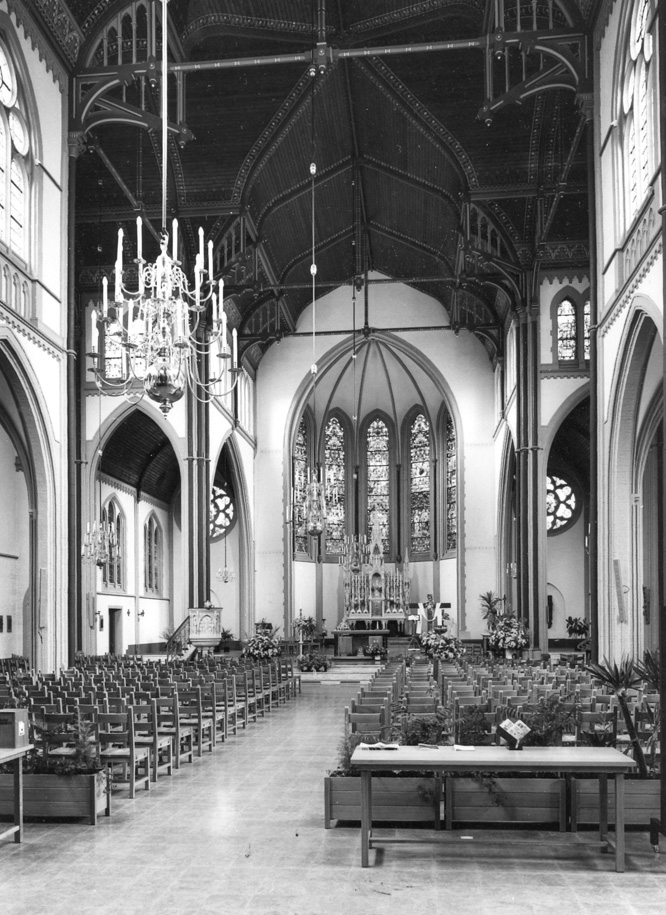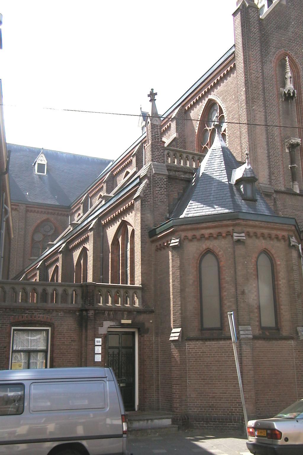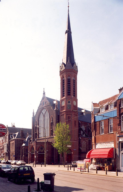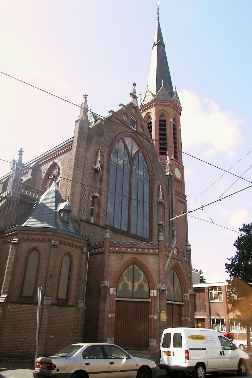 Gebouwd in 1902-1903 naar ontwerp van de architectencombinatie Albertus Arnoldus (Johannus) Margry en J.M. Snickers. Gerestaureerd na een brand in april 1983, waarbij de bekappingen van de kerk verloren gingen en het interieur aan zienlijke schade opliep. Het herstel kwam gereed in december 1984. Driebeukige neogotische kruisbasiliek met rechthoekige zijkapellen aan weerszijden van het koor en achthoekige toren met wimbergen en slanke naaldspits rechts naast de voorgevel. Links van de voorgevel een met vijf zijden van een achthoek uitgebouwde doopkapel met tentdak; in het midden tegen de voorgevel een eveneens vijfzijdig uitgebouwd portaal met wimberg en kantelenversiering. De voorgevel van het schip en de eindgevels van de dwarsbeuk bezitten puntgevels met pinakelbekroningen. In de voorgevel een groot spitsboograam met natuurstenen tracering in klassiek-gotische vormen; in de eindgevels van het transept elk twee spitsboogvensters. In de zijbeuksmuren bevinden zich venstertripletten, uitwendig gevat in Tudorbogen; de muren van de lichtbeuk hebben in koor en transept in iedere travee een groep van drie lancetvensters. De eindgevels van de zijkapellen bij het koor vertonen roosvensters. Het schip heeft schoorbogen. Het exterieur wordt verlevendigd door banden van helder rode verblendsteen rond de vensterbogen en bij de boogfriezen onder de gootlijsten. Het interieur dat bij een modernisering in 1967/1968 grijs geschilderd was, is bij de restauratie na de brand van 1983 wat de muurvlakken betreft wit geschilderd. De constructieve delen zoals pijlers en vensteromlijstingen vertonen een crême kleur en de kolonnetten hebben thans een roodbruine tint. De verhoogde vloer van priesterkoor is in de richting van het schip doorgetrokken; de banken zijn door stoelen vervangen. Het schip heeft gelede pijlers met doorgaande kolonnetten aan de zijde van het middenschip. De hoofdbeuken worden overdekt door houten tongewel- ven met accoladevormige doorsnede en trekbalken naar het voorbeeld van kapconstructies uit de Engelse late gotiek. Deze gewelven met hun polychromie zijn bij de restauratie na de brand in hun oorspronkelijke vorm hersteld. De zijbeuken zijn overkluisd door gemetselde kruisribgewelven; de zijkapellen bij het koor dragen houten tongewelven en de apsis, die lager is dan het koor en een vij sluiting bezit, heeft een stenen straalgewelf. In het koor en transept gebrandschilderde ramen, respectieflijk in 1930/1932 en 1928 aangebracht en vervaardigd door Lou Asperslagh. De roosvensters in de eindgevels van de koorkapellen hebben hun gebrand schilderd glas uit de bouwtijd bewaard. De oorspronkelijke neogotische inventaris is nog grotendeels aanwezig; gebeeldhouwd kalkstenen hoogaltaar met retabel, eveneens in kaiksteen gebeeldhouwde preekstoelkuip, vier houten biechtstoelen met o.a. goed gesneden reliefbeelden en een in marmer gehouwen beeld van St. Agnes, vervaardigd door de beeldhouwers Timmermans en Kroon te Den Haag. De koperen lichtkronen naar l7de-eeuws model zijn bij de recente restauratie aangebracht. De Agneskerk met haar toren is een karakteristiek voorbeeld van de neo gotische stijl, zoals die werd toegepast in het voetspoor van P.J.H. Cuypers door de architecten Margry en Snickers. In het stadsbeeld ter plaatse vormt de kerk met haar decoratieve toren een belangrijk herkenningspunt.