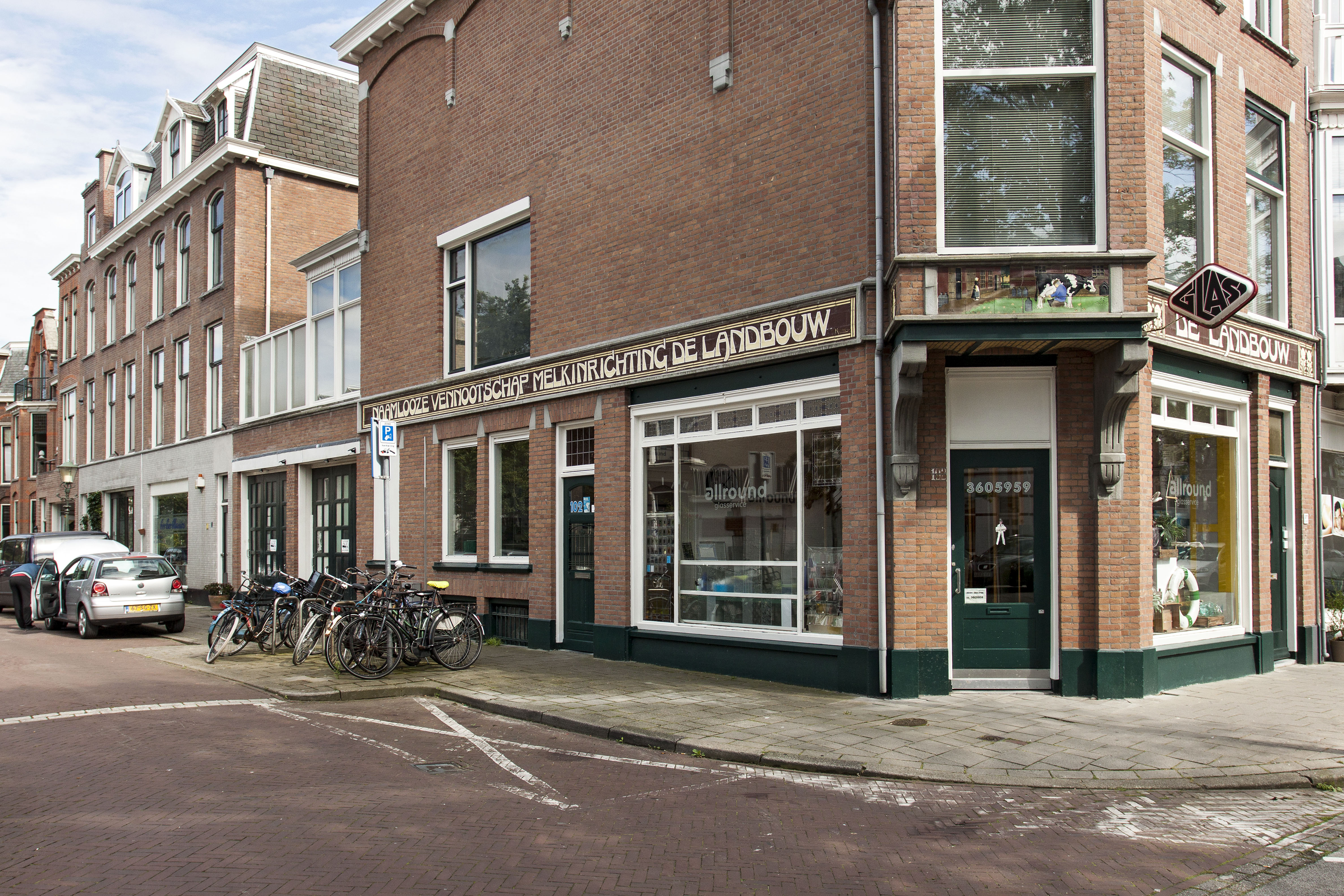 Winkel-woonhuis in neo-renaissancestijl op de hoek van de Beeklaan met de Stephensonstraat, gebouwd in 1904 naar ontwerp van architectenbureau Hoek en Wouters in opdracht van melkinrichting De Landbouw.
