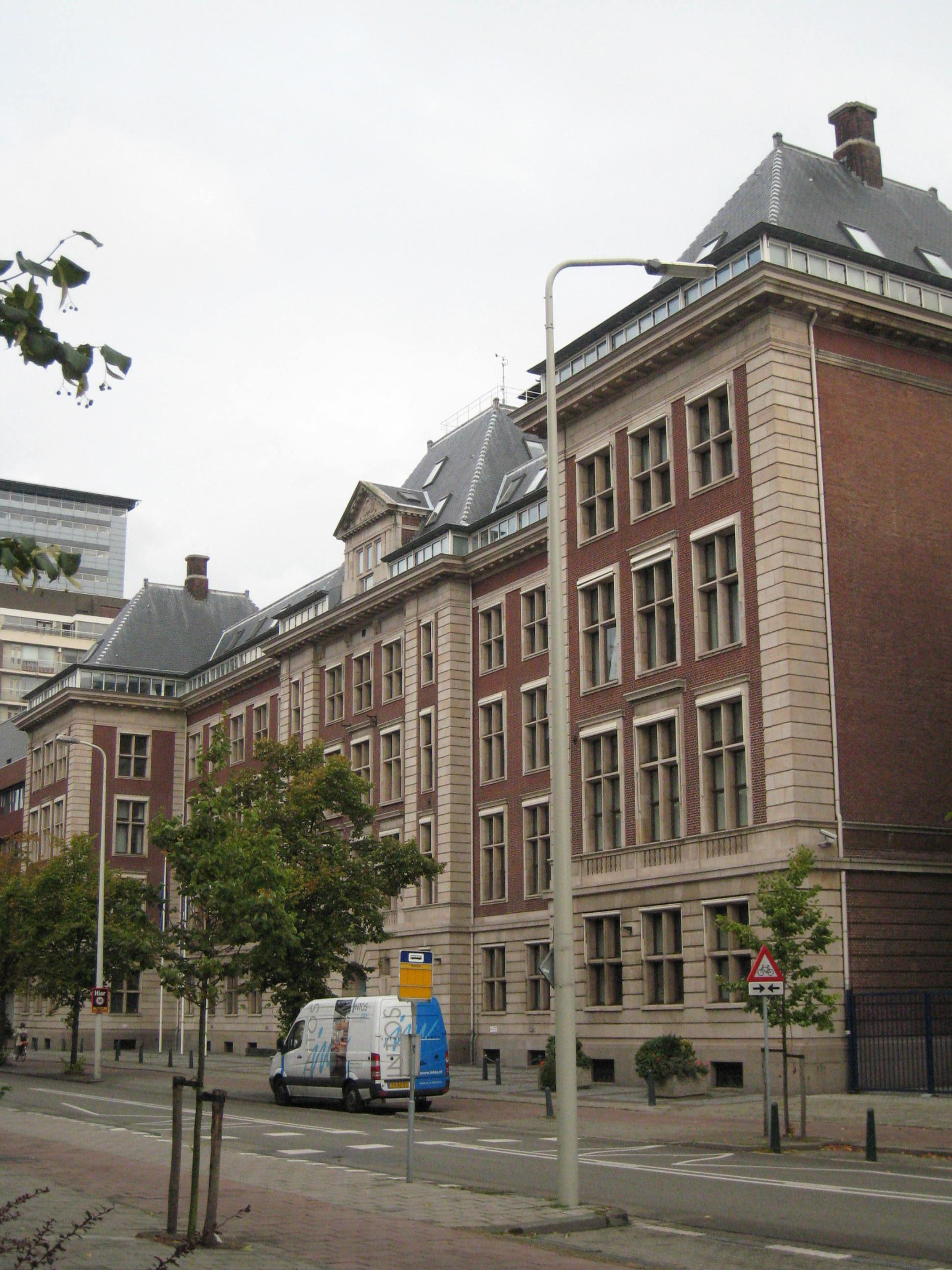 Vrijliggend en direct aan de straat grenzend Ministerie van Landbouw, Nijverheid en Handel, gebouwd op complexe plattegrond door D.E.C. Knuttel in 1917 en geinspireerd op het Hollands Classicisme uit de 17e eeuw.