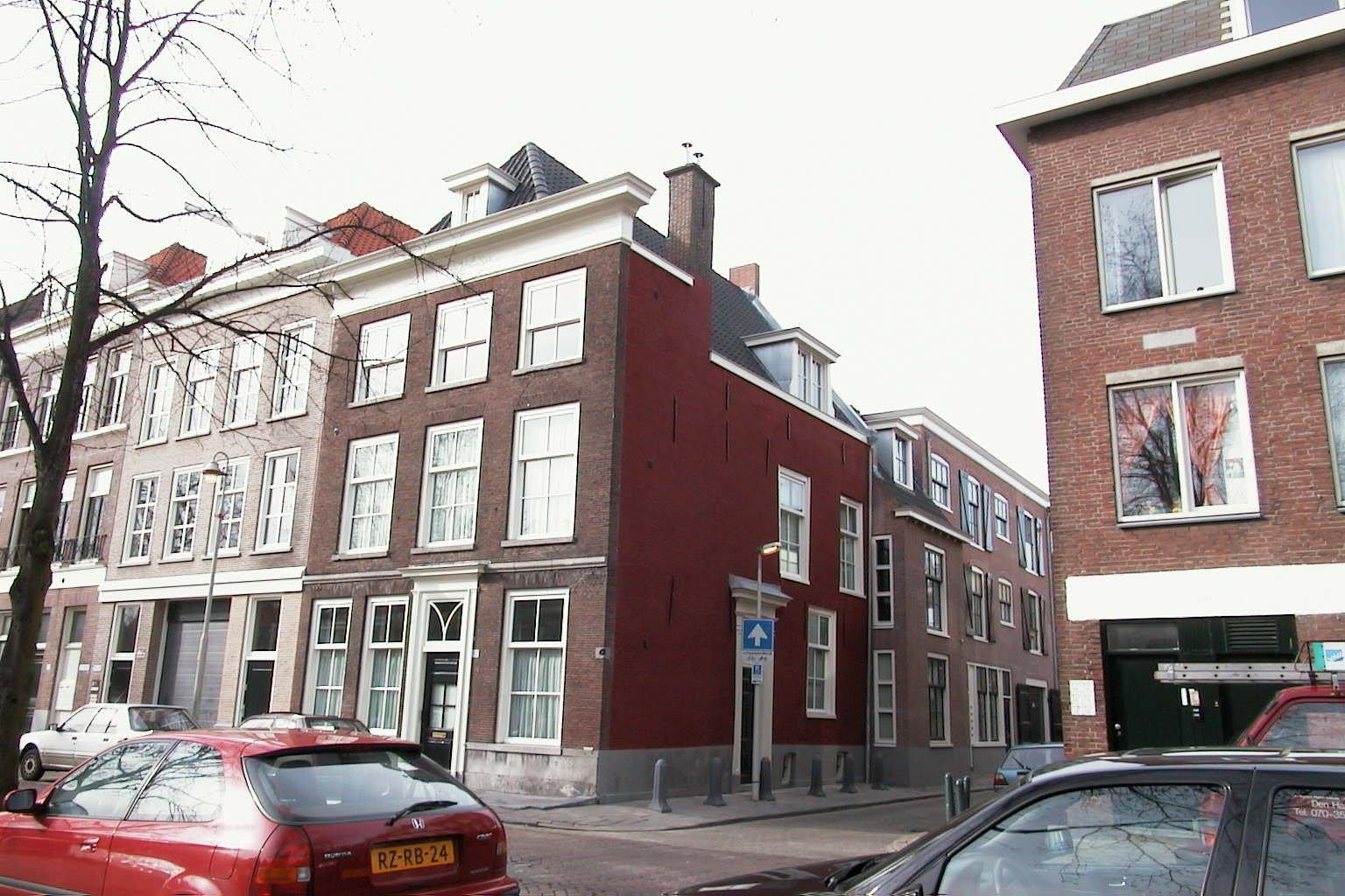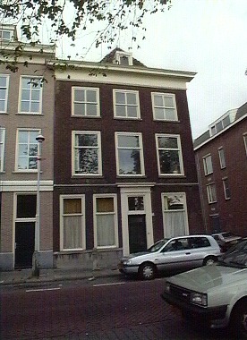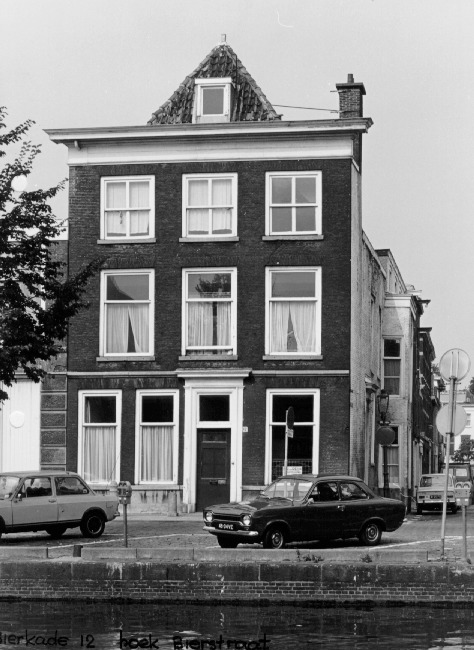 Eenvoudig 19e-eeuws PAND van goede verhoudingen met lijstgevel en deuromlijsting-hardstenen stoep met stoeppalen.