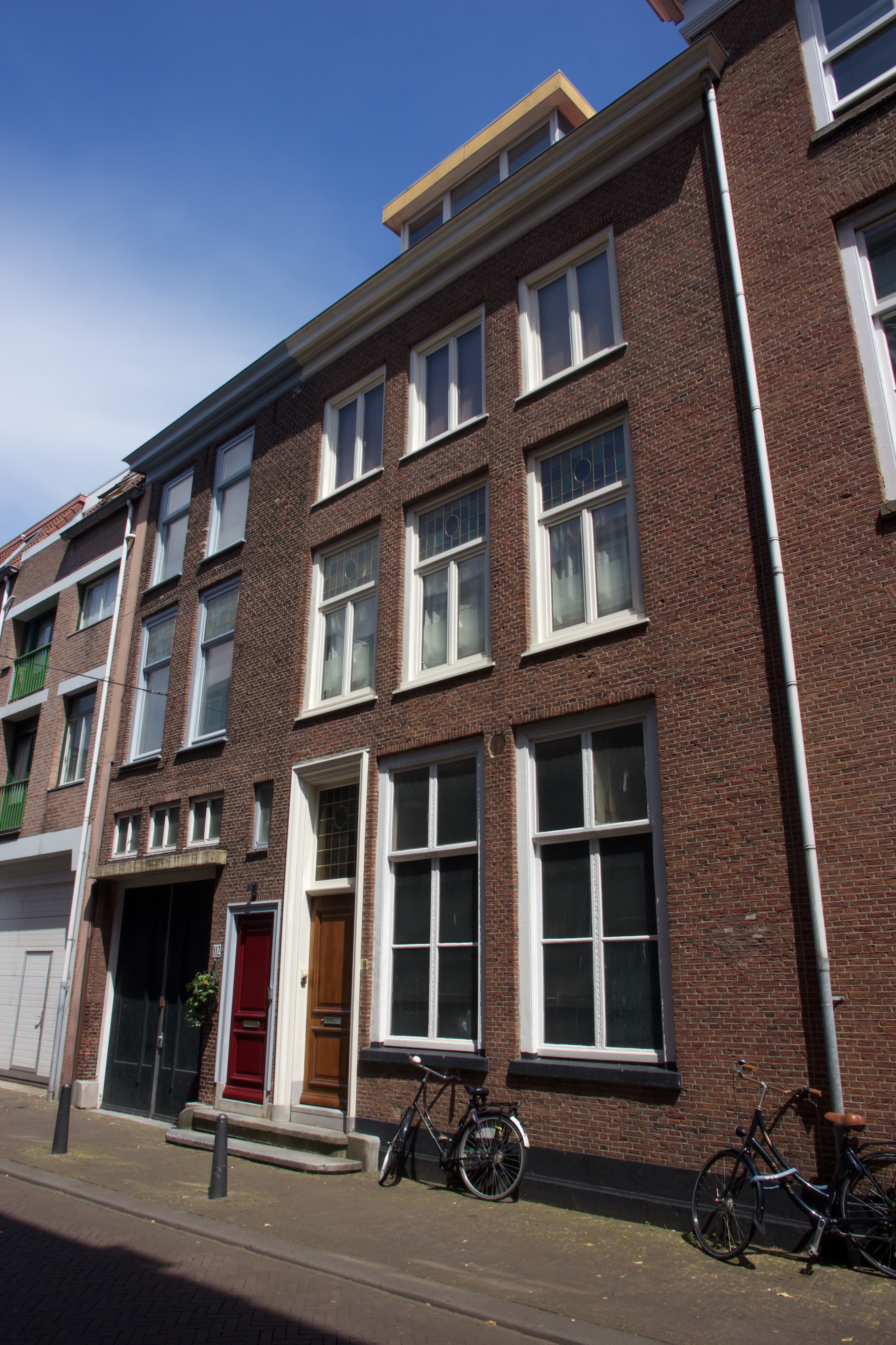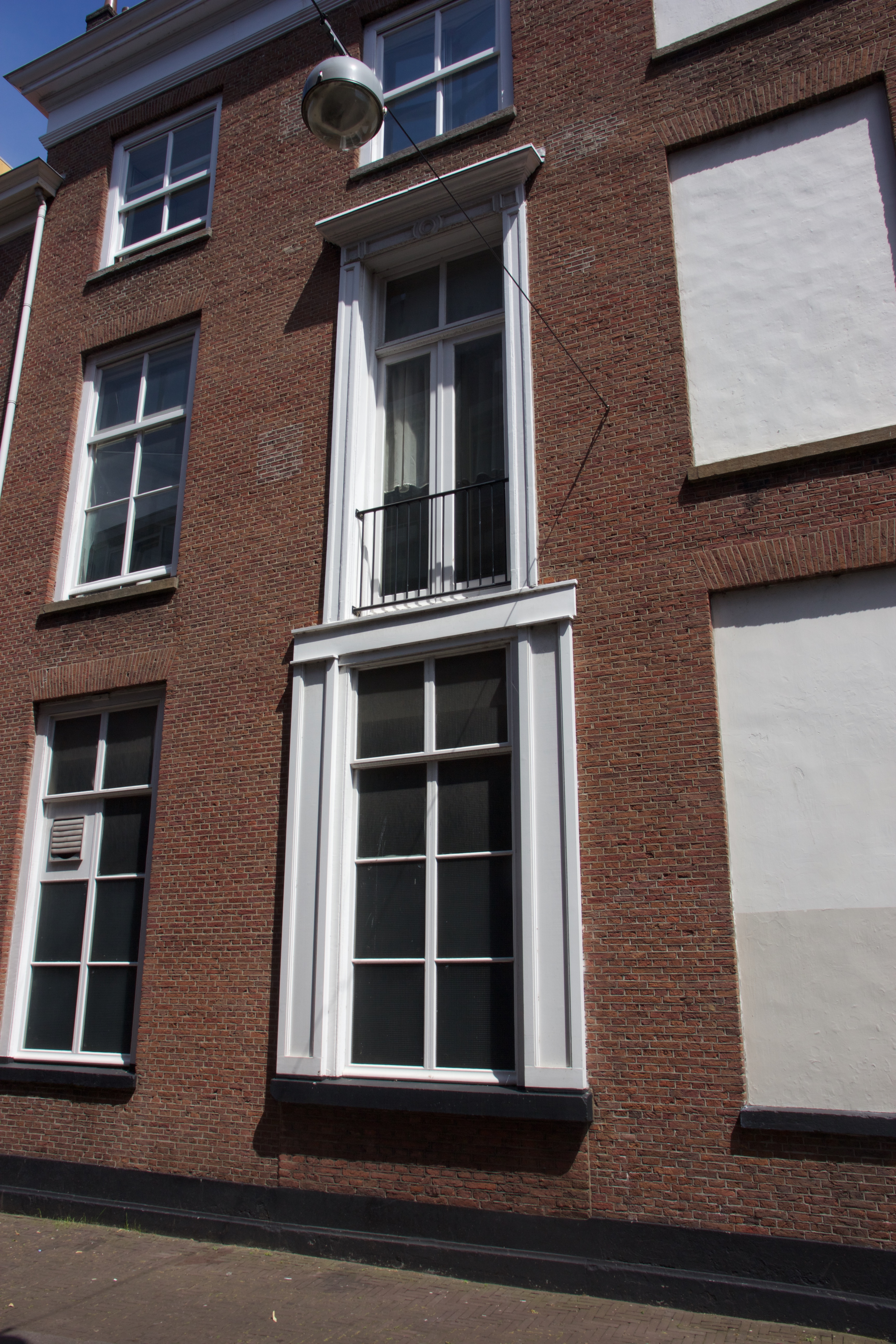 Pand op de hoek van de Kranestraat. Fors midden-19de-eeuws pand ter breedte van vier en ter diepte van vier assen. Parterre en twee verdiepingen onder omlopend schilddak. De gevels bezitten vensters, in de voorgevel flauw getoogd, met hardstenen dorpels, hardstenen plinten en houten kroonlijsten. In de gevel aan de Kranestraat in de tweede as van links houten vensteromlijstingen met eenvoudige versieringen.
