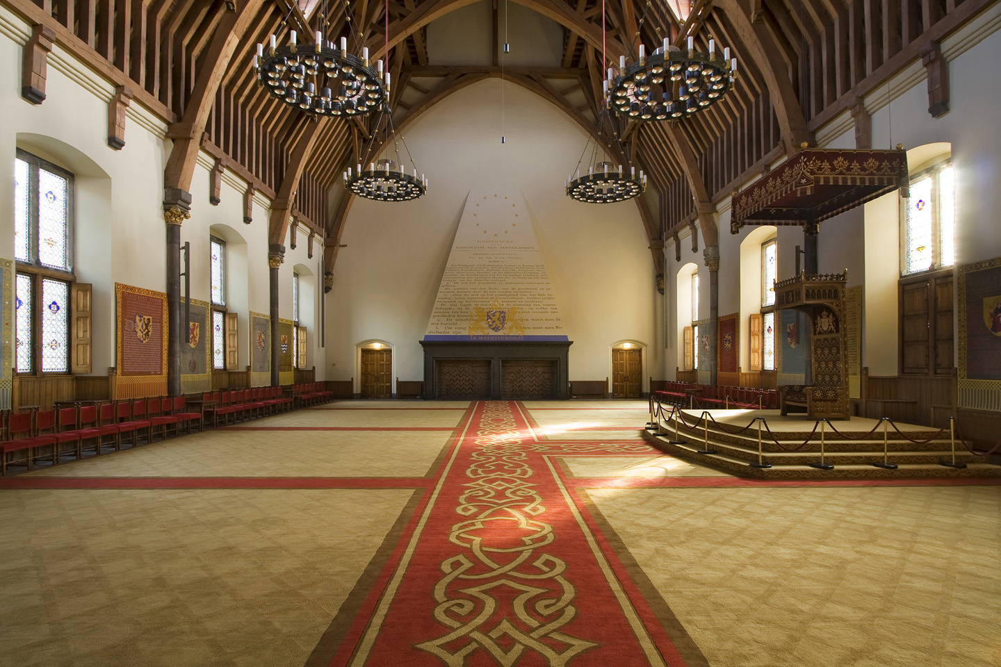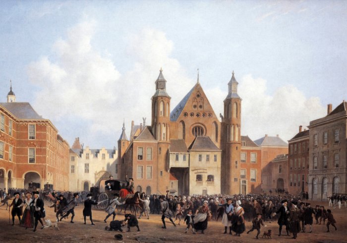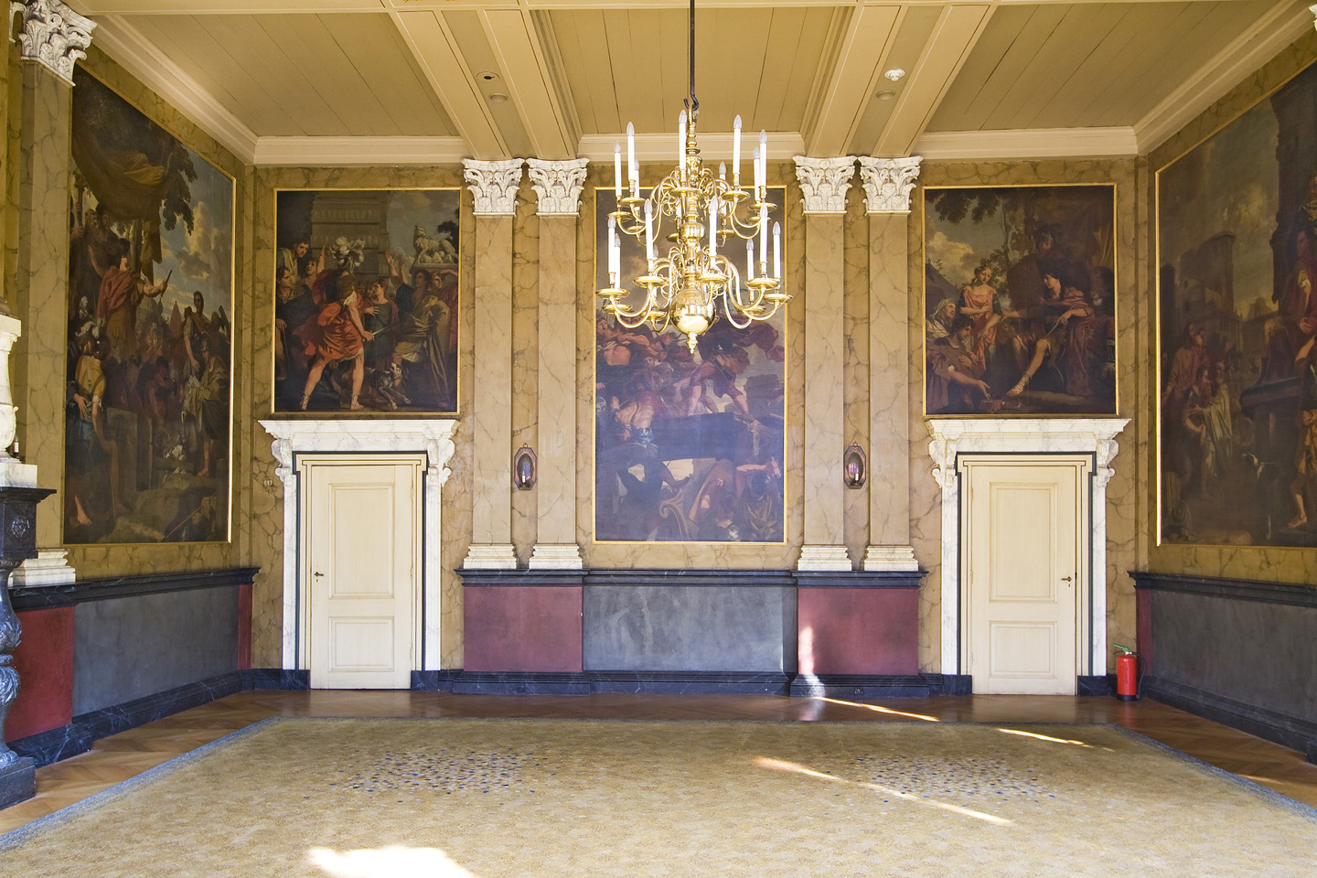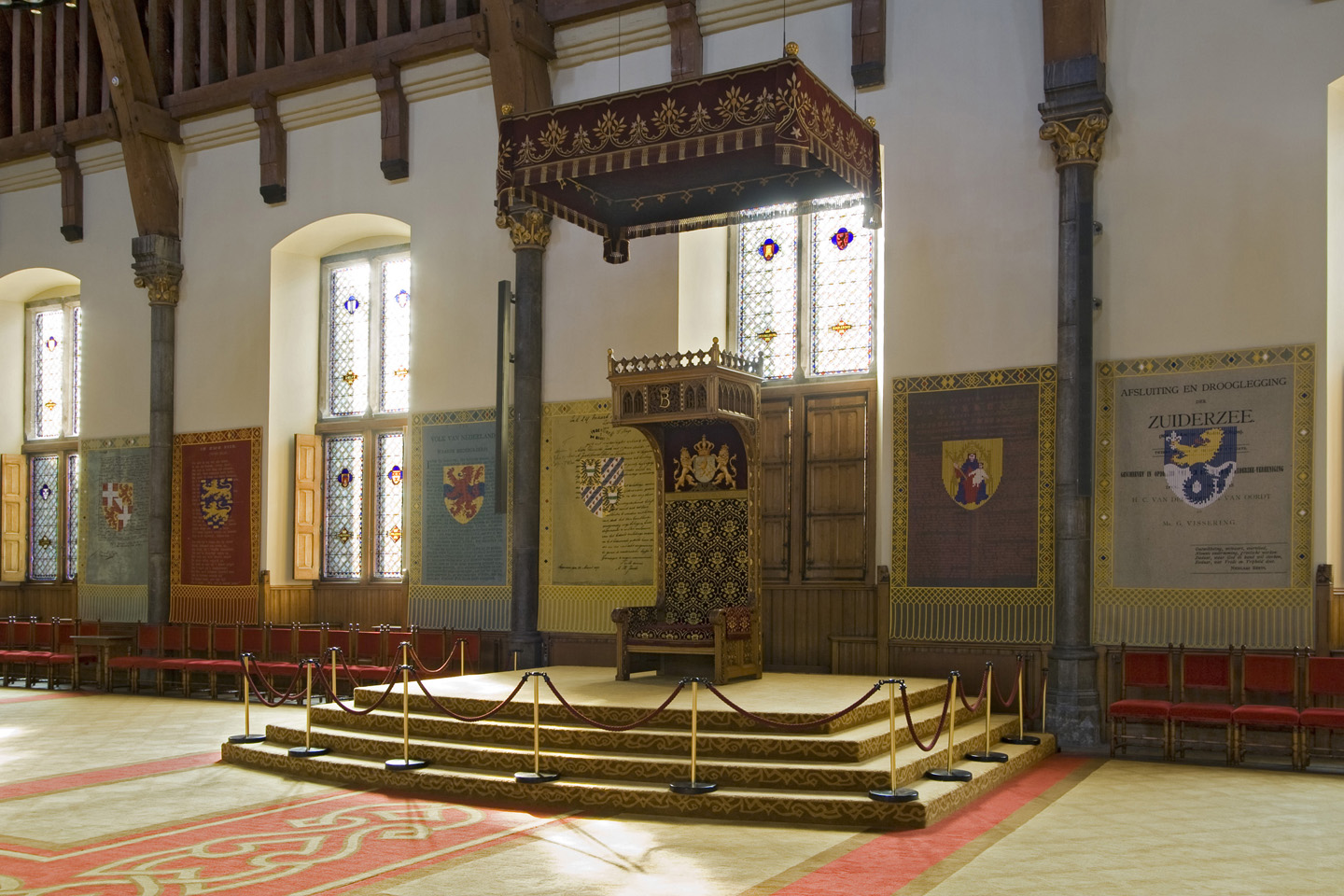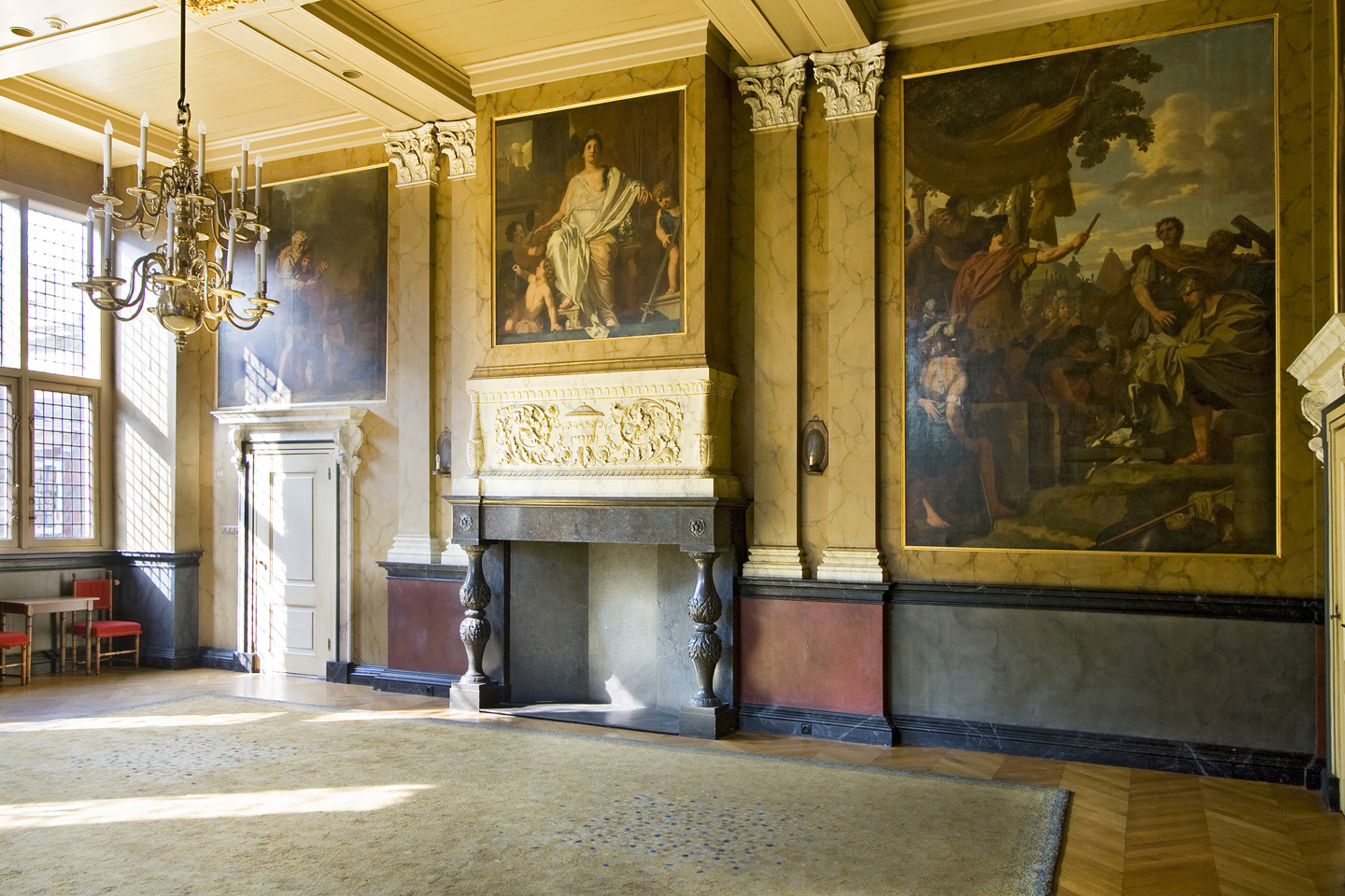 VOORMALIG PALEIS DER GRAVEN VAN HOLLAND MET RIDDERZAAL; het oudste deel van omstreeks 1250 bevat nog een kelder uit de bouwtijd en daarboven de Rolzaal; de oostelijke aanbouw, eertijds de Civiele kamer van het Hof van Holland, dateert in zijn huidige toestand uit 1668, toen ook de zeven wandschilderingen op doek door Gerard de Lairesse werden aangebracht; de Ridderzaal uit de tweede helft van de 13e eeuw bevat in de kelder nog resten van een ouder gebouw.