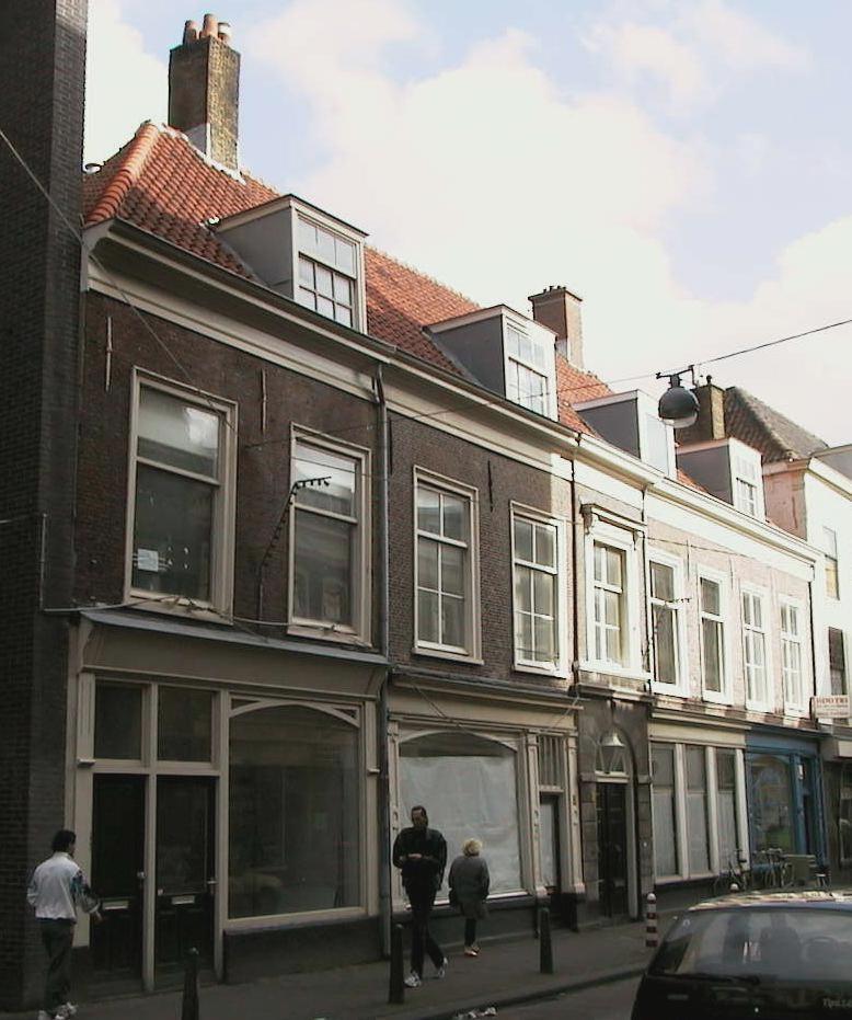 Achttiende eeuws pand, bestaande uit parterre en verdieping, onder één dwars schilddak. Centraal een poort met natuurstenen omlijsting (Rijksmonument behorend tot Lutherse Burgwal 9). Links hiervan twee winkelpuien, rechts vijf ramen en een deur onder een puilijst. Op de verdieping negen vensterassen met schuiframen in geprofileerde omlijstingen. Het middelste raam (boven de poort) wordt afgedekt door een hoofd-gestel op consoles. Risalerende poorttravee en verkropte kroonlijst. Drie dakkapellen met negenruitsschuiframen en een dakkapel zonder roeden- verdeling. Vensters onder rollagen; staafmuurankers. Rechter deel (vier assen) gesausd.