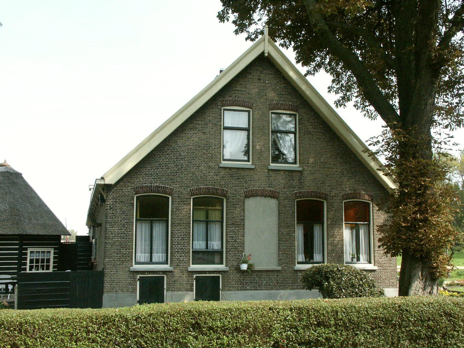 De voorgevel van het woonhuis is vijf vensterassen breed met zowel op de begane grond als in de kapverdieping houten schuifvensters. De middelste vensteras op de begane grond is uitgevoerd als blindnis. Onder de linkerhelft van het huis is een kelder gesitueerd. Voor daglichttoetreding hiervoor zijn onder de twee rechter vensters van de opkamer keldervensters met luiken in de voorgevel opgenomen. De gevels van de stal zijn voorzien van opgeklampte staldeuren en stalvensters met gietijzeren tracering. Rechts van de woning is een karnhuis op achthoekig plattegrond van houten rabatdelen onder rietendak. Achter de stal bevindt zich een hooiberg met vier betonnen roeden en een schuur met geteerde houten delen onder een zadeldak met rode pannen.