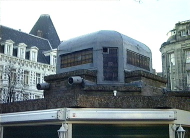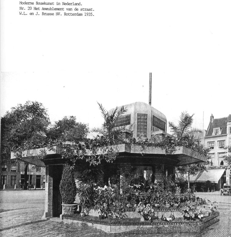 Vrijstaande kiosk, gebouwd in 1924-1925 in kubistisch-expressionistische trant naar ontwerp van H.P. Berlage in samenwerking met Piet Zwart. De kiosk maakt deel uit van het door genoemde architecten ontworpen totale herinrichtingsplan van het Buitenhof en de weg langs de Gevangenpoort. De kiosk had in oorsprong de functie van verkooppunt voor bloemen en tijdschriften, terwijl er onder een openbaar damestoilet was ingericht. De kiosk van een bouwlaag opgetrokken in beton en gele baksteen bestaat in plattegrond uit een kleine en een grote achthoek, die in elkaar zijn geschoven en door een ver uitstekend luifeldak van beton worden overdekt. De kleine achthoek wordt bekroond door een vierkant torentje met afgeschuinde hoeken, bestaande uit baksteen en glazen bouwstenen en gedekt door een betonnen koepeldak. Het betonnen luifeldak diende oorspronkelijk mede als platform voor bloemen en planten. Waardering.