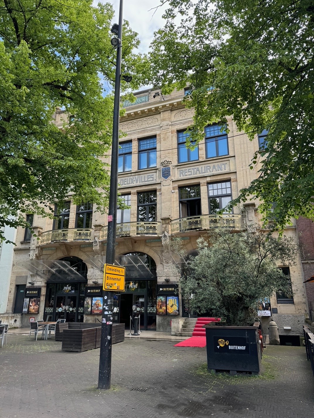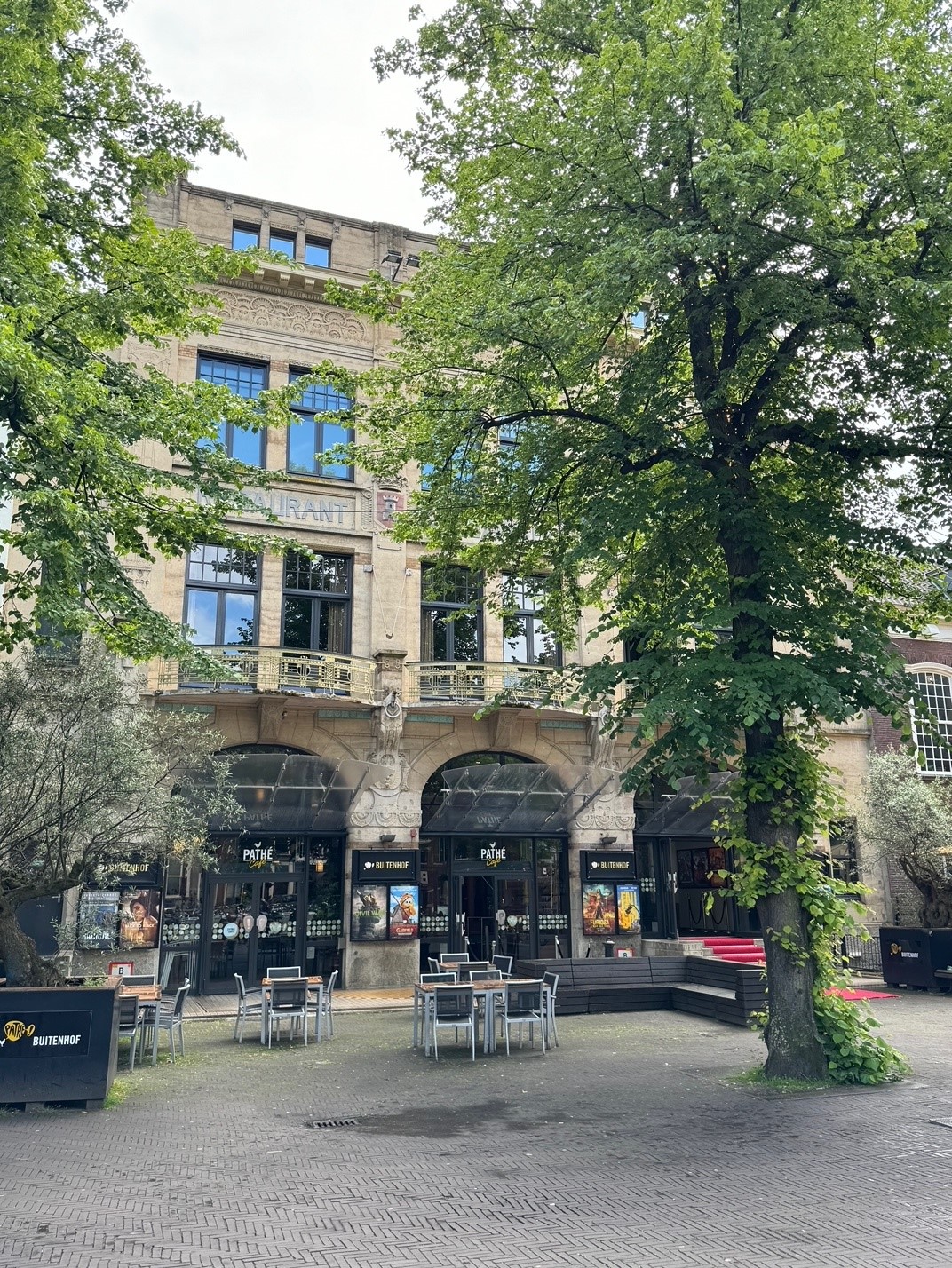Voormalig hotel in de stijl van de Wiener Sezession gebouwd in 1904-1906 naar ontwerp van Joh. Mutters Jr. als uitbreiding van het hotel "De Twee Steden" aan de latere Hofweg. Sinds 1935 in gebruik als bioscoop (Cineac). Het pand is opgenomen in de aaneengesloten bebouwing van de pleinwand. NB. Het interieur dat feestzalen bevatte is behoudens het trappenhuis te rechterzijde geheel gemoderniseerd. De bescherming strekt zich dan ook slechts uit tot de voorgevel en het trappenhuis. Omschrijving.