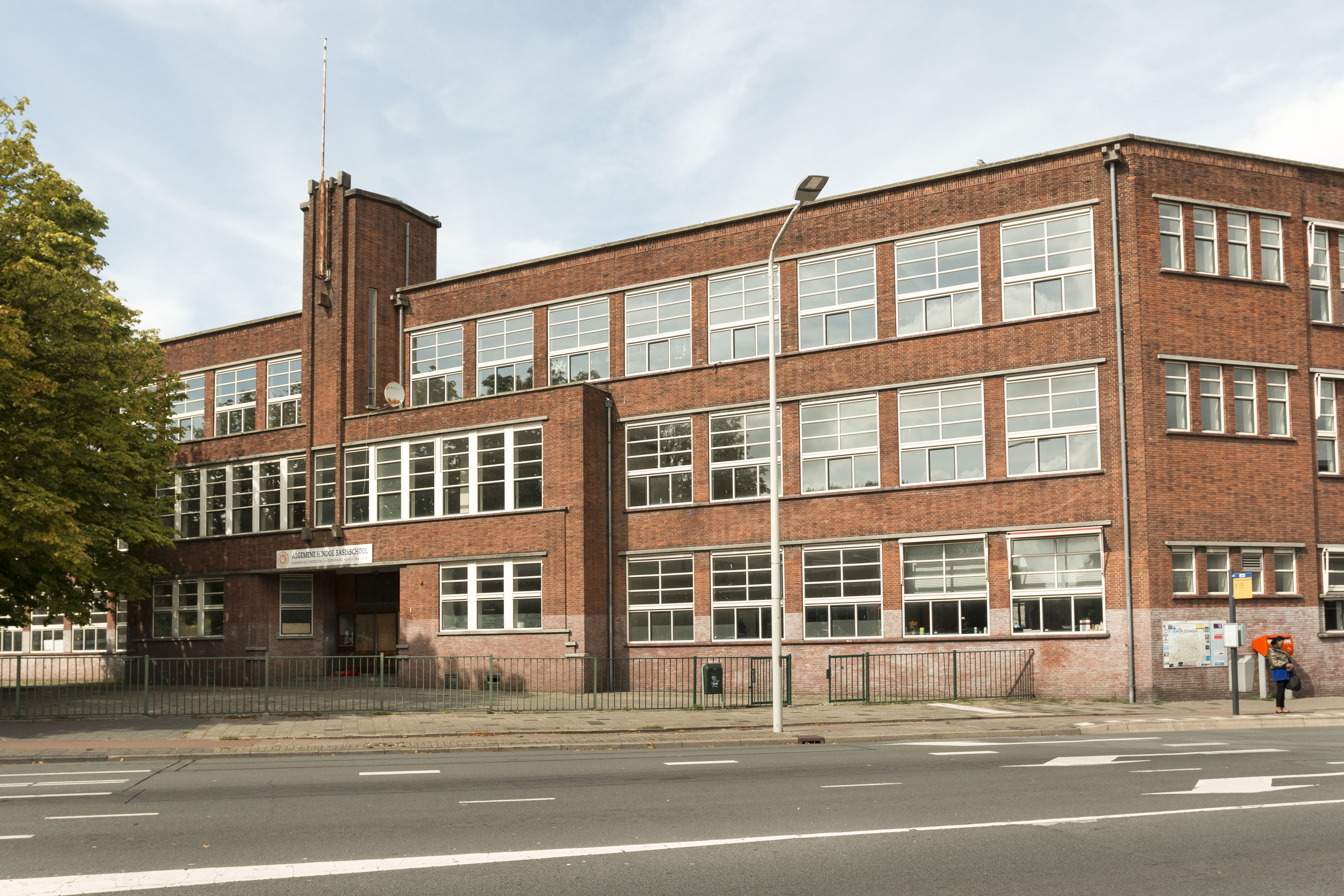 Ambachtsschool gelegen op de hoek van De La Reyweg, Veluweplein en Schalk Burgerstraat, ontworpen in 1932 in opdracht van de "Vereeniging tot Oprichting en Instandhouding van Christelijke Nijverheidsscholen voor jongens en meisjes te 's-Gravenhage en omstreken". Bouwkundig ingenieur H. van Vreeswijk en aannemer Gesman Zoetemeijer waren onder andere bij dit project betrokken. De school is op 28 juni 1934 in gebruik genomen.