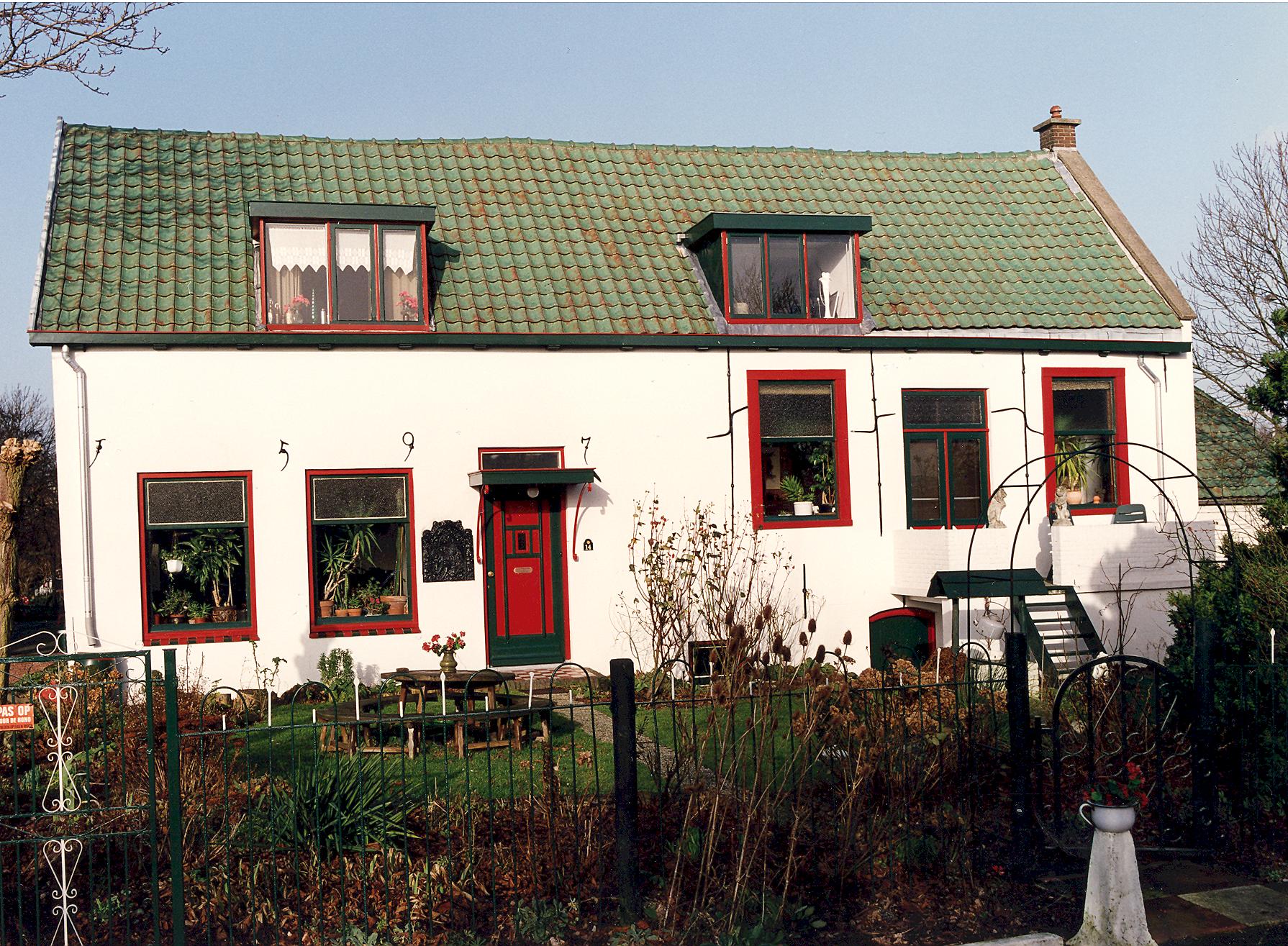 Van vrij recente datum zijn de vensters in de linker zijgevel, de bakstenen beklamping van de rechter zijgevel, de groen geglazuurde dakpannen en de jaartalankers. Deze muurankers in de voorgevel zijn op grond van oudere afbeeldingen weer teruggebracht.