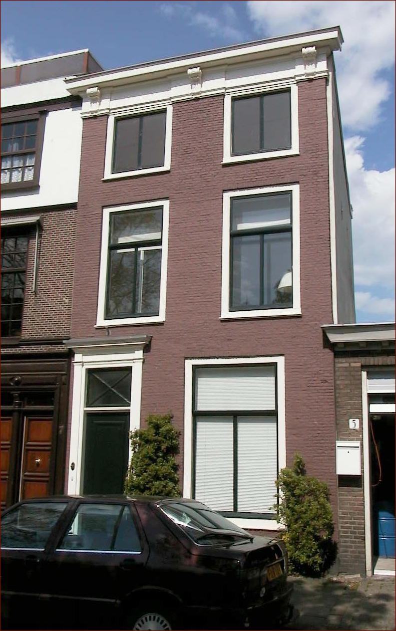 Pand, bestaande uit parterre, verdieping en zolderverdieping. Breedte: twee vensterassen. Gesausde lijstgevel, 18de eeuw. Houten kroonlijst met consoles Lodewijk XIV. Deuromlijsting met pilasters en hoofdgestel.