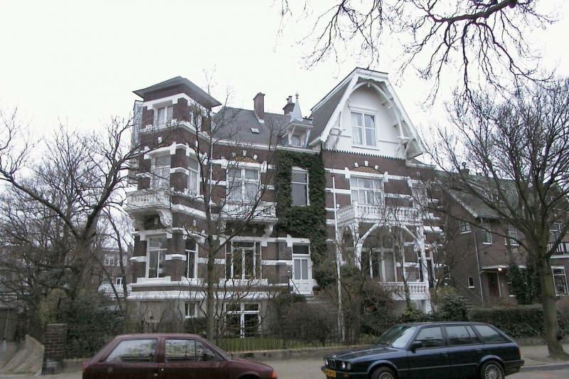 Villa op complexe plattegrond, bestaande uit souterrain en twee bouwlagen onder een met shingles gedekte samengestelde kap. Het souterrain is gepleisterd; voor het overige zijn de gevels van baksteen met witte speklagen en gepleisterde cordonlijsten tussen de bouwlagen.