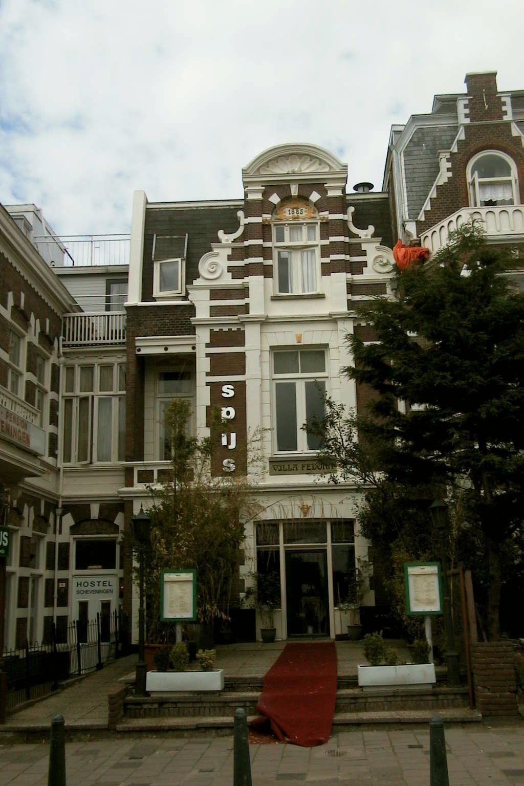 Het pand, genaamd villa Fedora heeft een in schoon metselwerk met witte sierbanden opgetrokken voorgevel. Deze gevel is rijk gedetailleerd in de vormentaal van de neo-renaissance waarbij met name de topgevel met hardstenen voluten en tympaanvormige beëindiging opvalt. Oorspronkelijk had het huis een L-vormige plattegrond met een samengestelde kap bestaande uit een zadeldak achter de topgevel en een haaks hierop gesitueerde dwaskap. In 1902 heeft een verbouwing plaatsgevonden in opdracht van de Amsterdammer J,K. Broekman om het pension geschikt te maken voor enkele bewoning. Toen is de interne plattegrond gewijzigd waarbij de van oorsprong overdwars geplaatste trap in het midden van het huis is vervangen door een trap in de langsrichting waardoor de plattegrond ontstond van flankerende gang met ernaast gelegen kamers en suite. Ook de zolderverdieping werd toen vergroot en de oorspronkelijke kap maakte plaats voor het huidige platte dak met een schild langs de voorgevel.