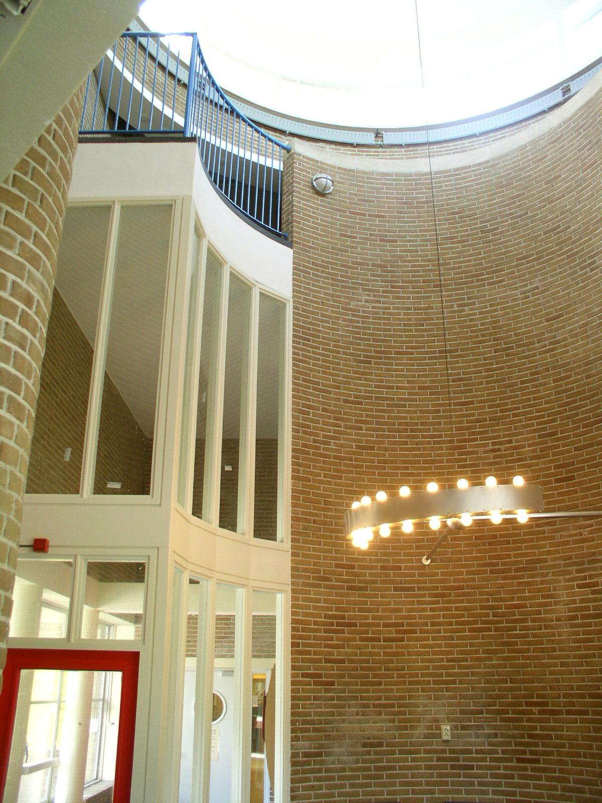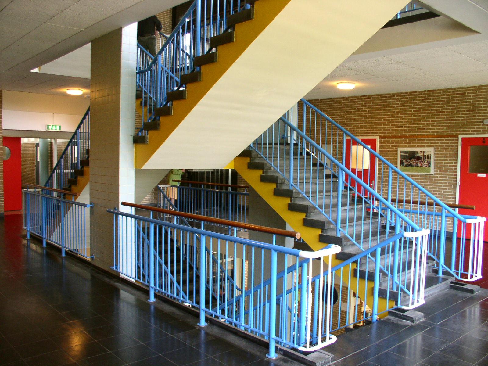 van het lyceum. In de school zijn principes uit het Daltononderwijs toegepast, waarbij iedere leraar zijn eigen vaklokaal had en de leerlingen tussen de lesuren van lokaal wisselden. De daardoor veroorzaakte verkeersstromen maakten het noodzakelijk dat er goede verkeersruimten waren zoals een hal en trappenhuizen. Er werden geen werknissen, maar wel een centrale bibliotheek annex studieruimte gecreëerd.