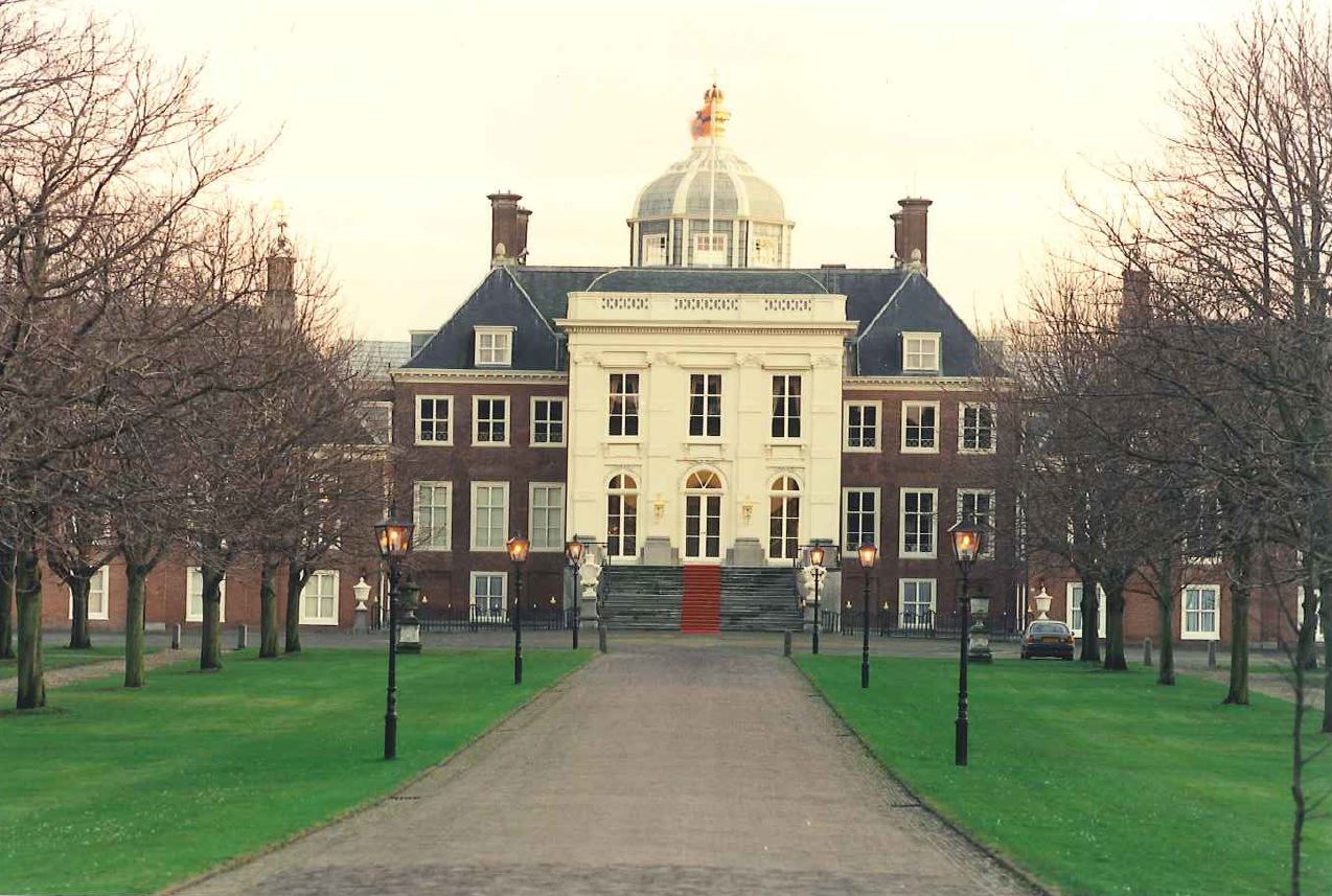 Voor Amalia van Solms gebouwd door Pieter Post in 1645 en volgende jaren: in 1734-1737 verbouwd en uitgebreid door Daniel Marot.