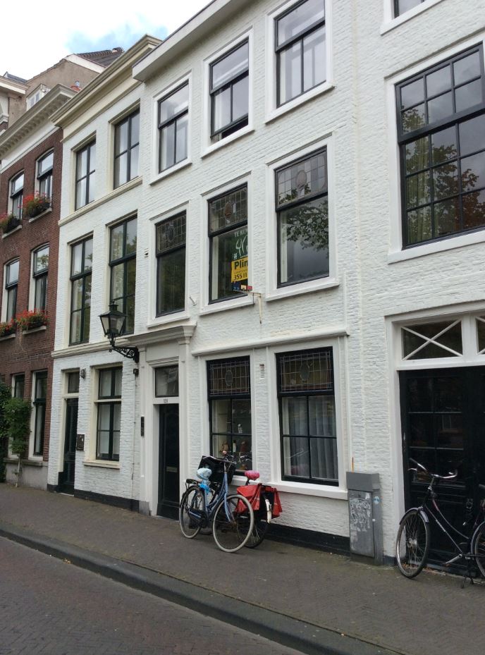 In oorsprong 17de- of 18de eeuws pand ter breedte van drie vensterassen, bestaande uit parterre en twee verdiepingen. De kap is door een plat dak vervangen. Van de witgesausde gevel, die de klezoortjes heeft bewaard, is het gedeelte voor de bovenste verdieping in vrij recente tijd vernieuwd of beklampt, waarbij de oude houten kozijnen opnieuw zijn toegepast. De parterre heeft twee vensters onder één geprofileerde lijst en een door verdiepte pilasters en hoofdgestel omlijste deur in vroeg-19de-eeuwse trant, maar van recente datum.