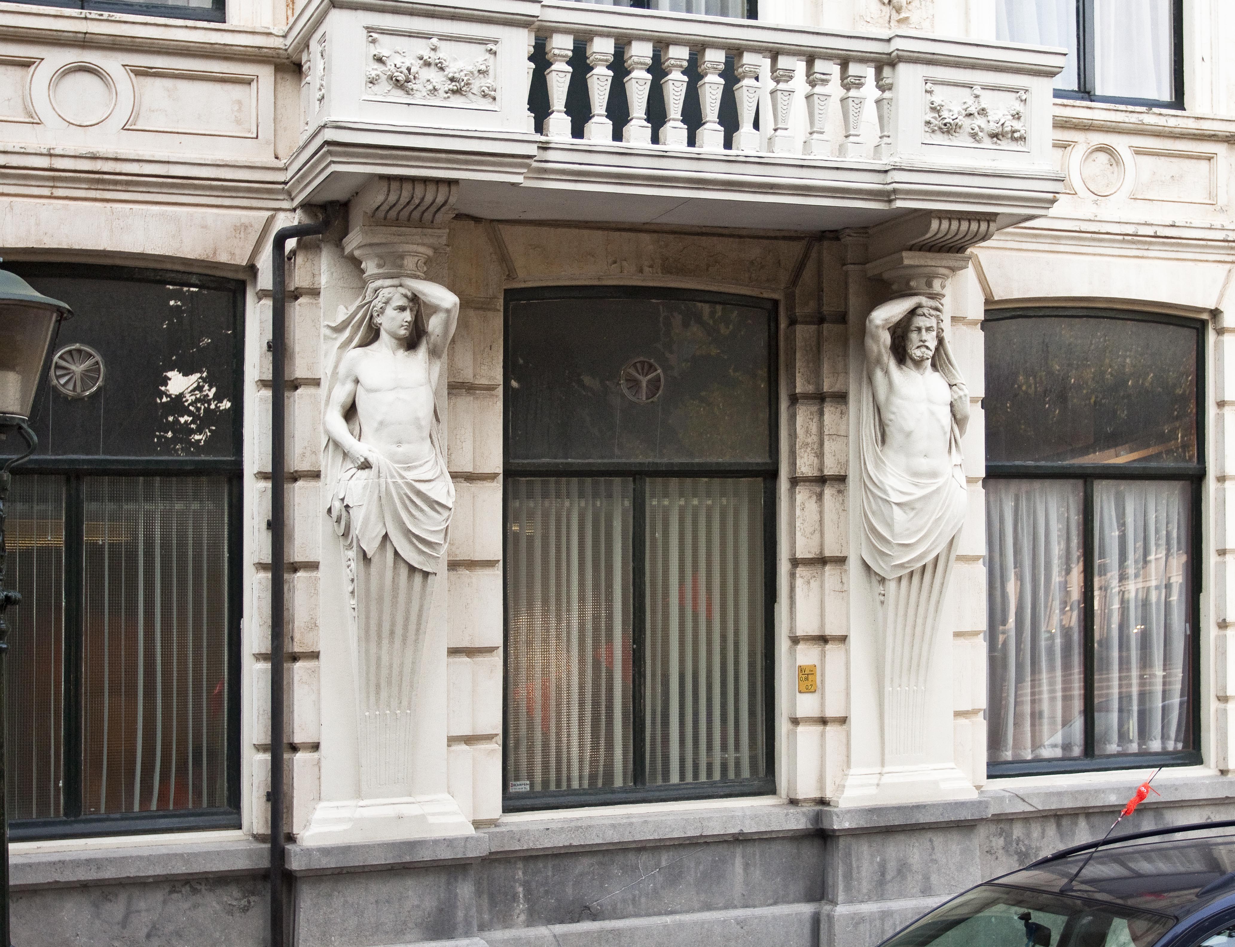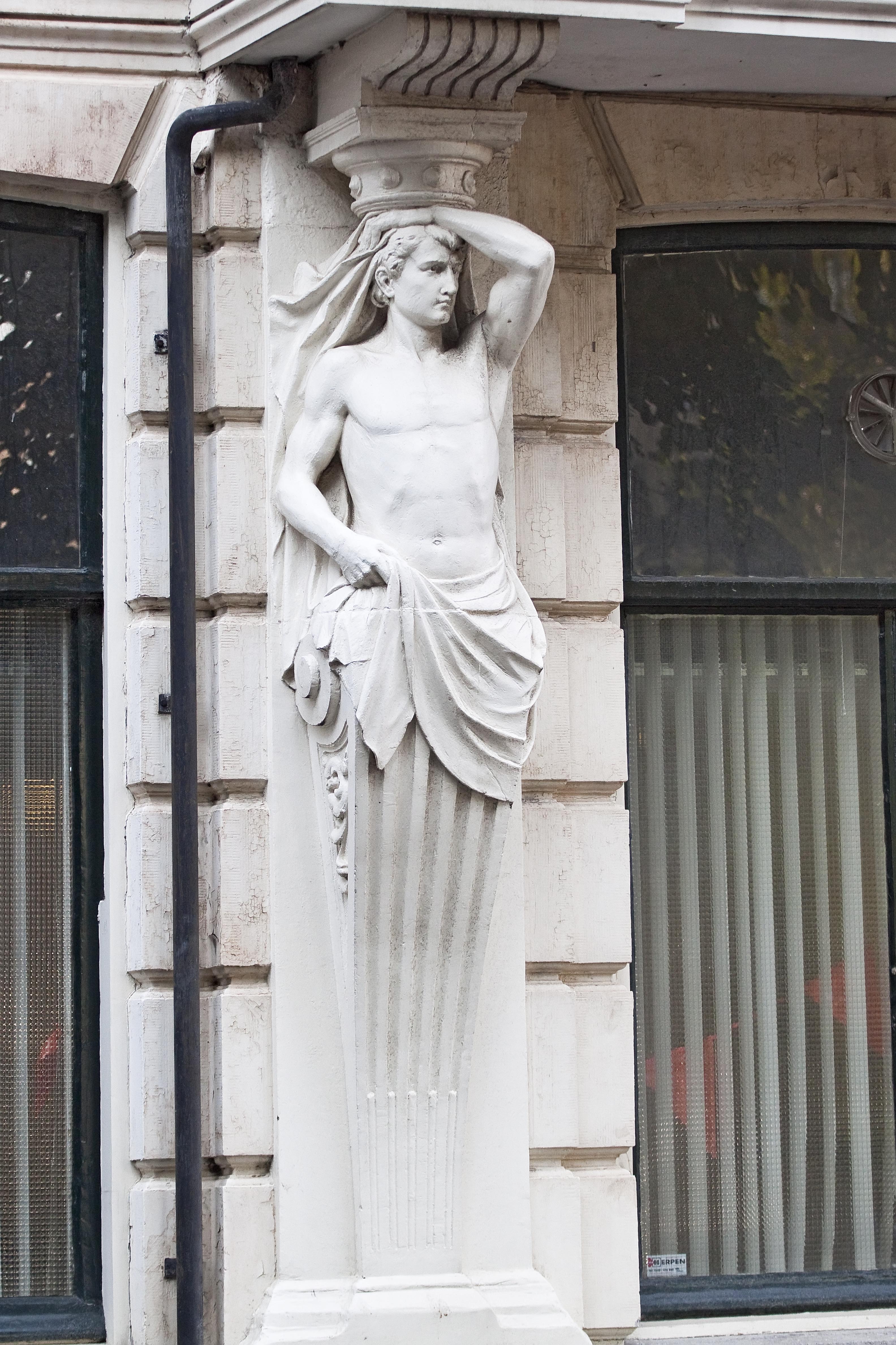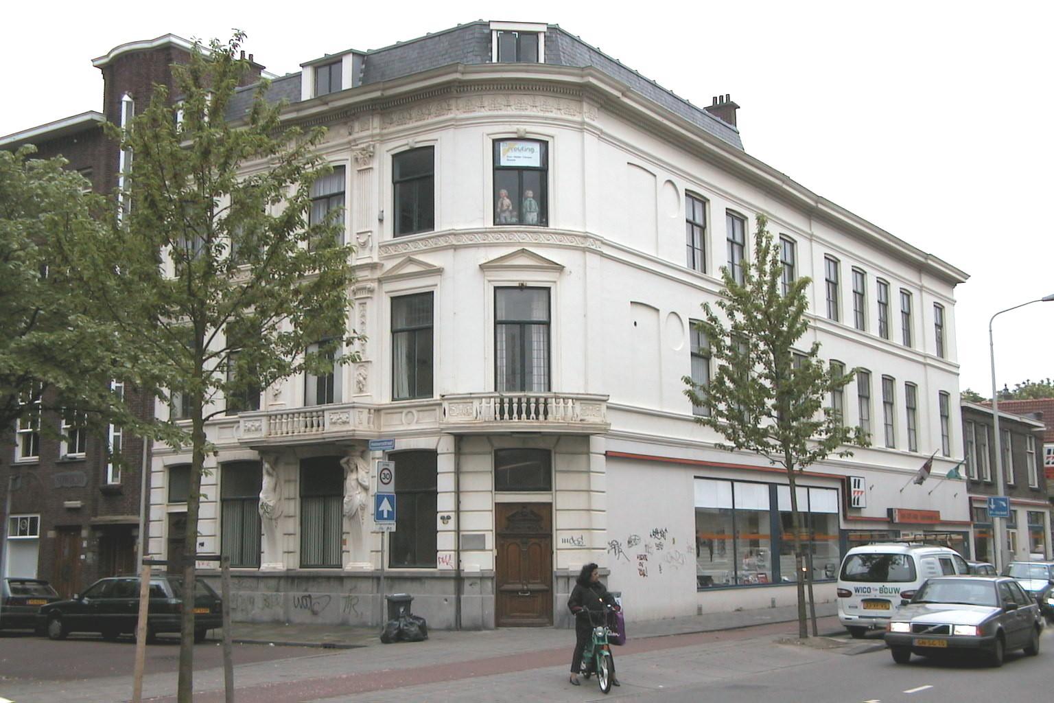 Gepleisterd hoekpand gebouwd in 1881 voor Johan Hendrik Franciscus te Poel, beeldhouwer, en Frederick Stephanus Stoltefus.