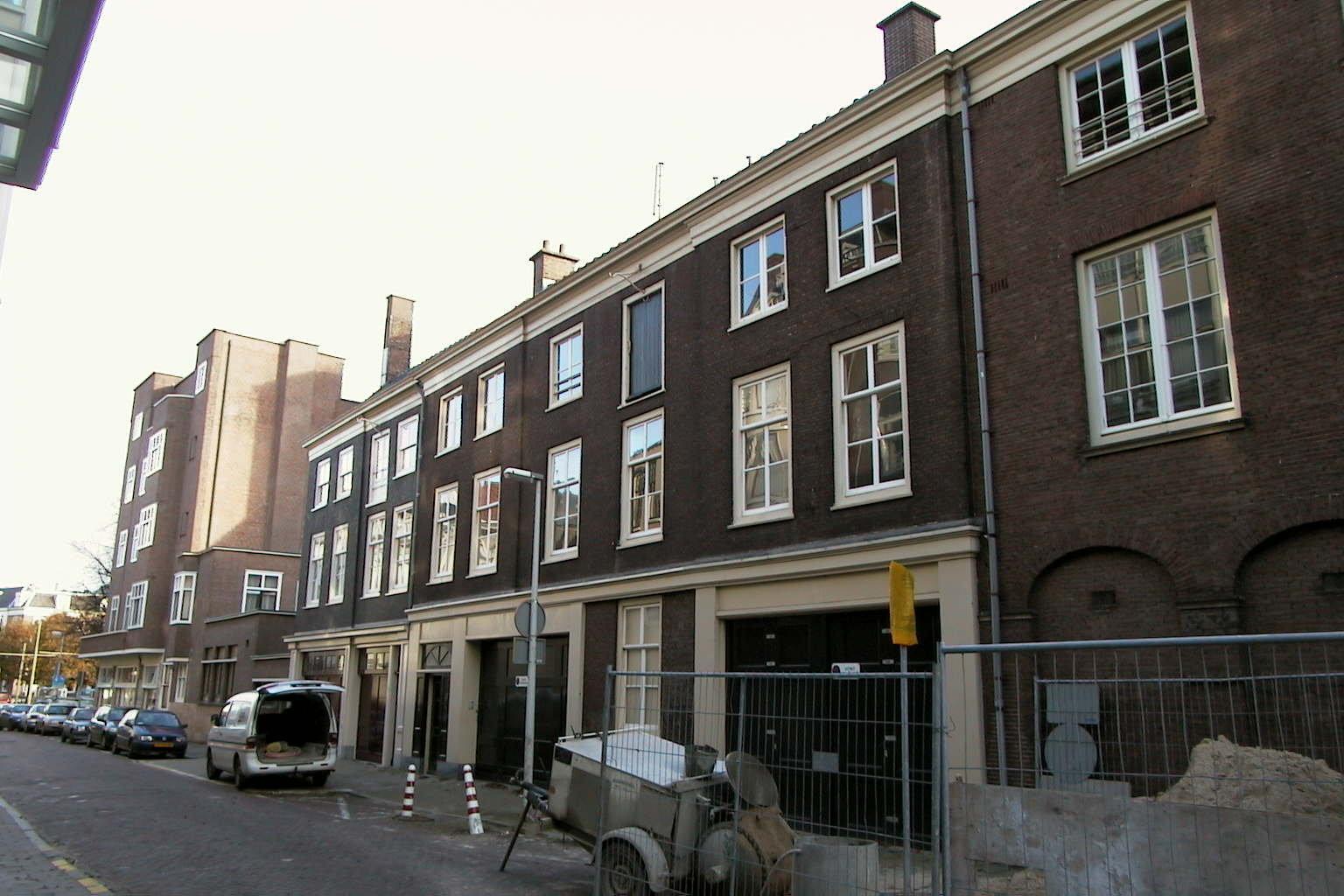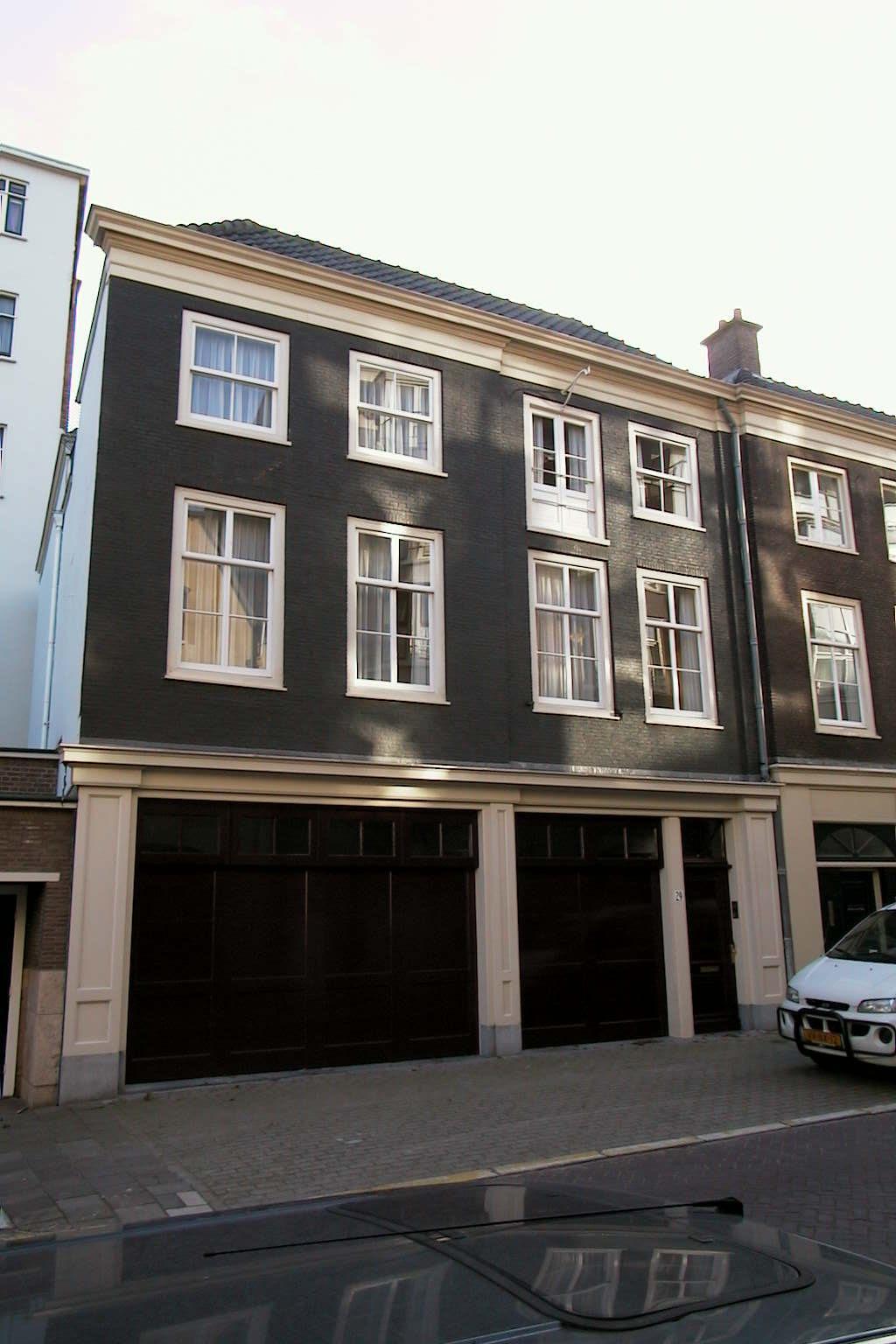 PAND met gevel van omstreeks 1800 met koetspoorten, gebouwd als koetshuis van het achterliggende pand aan de Lange Vijverberg.