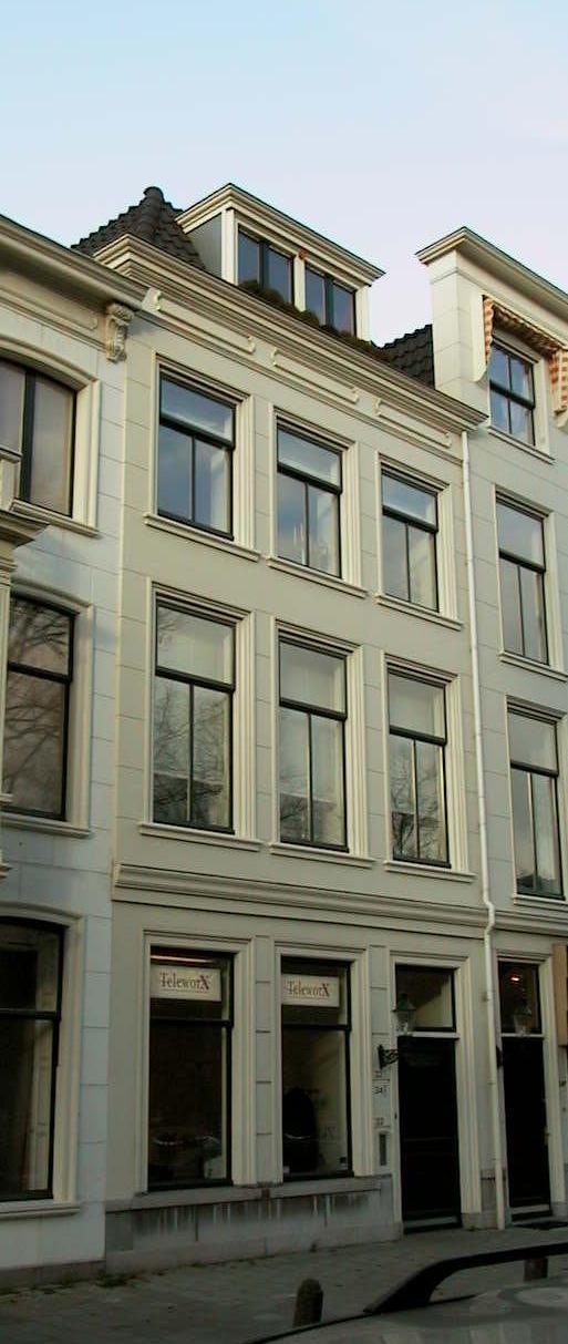 Pand van drie bouwlagen met geblokt gepleisterde drie-assige lijstgevel uit het derde kwart van de 19de eeuw. De gevel heeft een hardstenen plint, geprofileerde dorpels onder de tweeruitsschuiframen en panelen in het fries van het hoofdgestel. Schilddak met brede dakkapel van recente datum. Drie vernieuwde stoeppalen met kettingen.