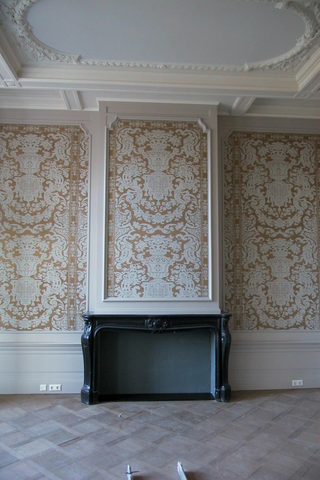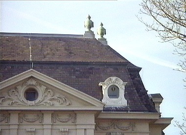 De achtergevel is op de beletage zeven vensterassen breed; op de verdieping zes. De twee vensterassen brede eindrisalieten eindigen ter hoogte van de zolderverdieping in balkons. Op de hoeken van de balkons sokkels met vazen in Lodewijk XVI-stijl; tussen de sokkels in smeedijzeren hekken. De balkons zijn elk te bereiken via een naar binnendraaiende deur in een klassieke natuurstenen omlijsting van twee pilasters met tympaanbeeindiging.Tussen de hoekrisalieten is op de beletage een veranda met drie openslaande houten deuren met rondboogvormige bovenlichten. Boven de veranda is een balkon met natuurstenen balustrade waarop siervazen.