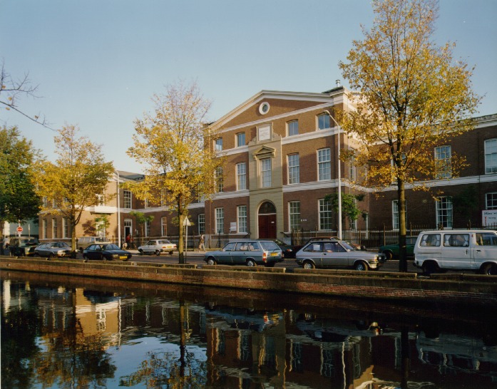 Voormalig weeshuis, bestaande uit drie vleugels op U-vormige plattegrond. Het gebouw telt twee bouwlagen, deels onder zinken kappen. De bouwlagen worden door een geprofileerde cordonlijst van elkaar gescheiden. De voorgevel is aan de Hooftskade gesitueerd. De vleugel langs de Koningstraat, oorspronkelijk van gelijke lengte als de tegenovergelegen vleugel, is in 1925-1926 aanmerkelijk ingekort. De voorgevel bezit een naar voren springend middenpaviljoen en twee eveneens naar voren springende zijpaviljoens die worden bekroond door deels bakstenen frontons met oculi. Het middenpaviljoen heeft een attiekverdieping. Het gebouw bezit een hardstenen plint en bakstenen gevels, met uitzondering van de gepleisterde middenas van het middenpaviljoen. Hierin bevindt zich de getoogde ingangspoort en daarboven een venster met fronton op consoles. De vensters zijn vijftienruitsschuifvensters. Van de gevel aan de kant van de Koningstraat zijn de beide uiteinden en het middendeel als risaliet uitgebouwd; de uiteinden worden bekroond door frontons, voorzien van glas. Het hoofdtrappehuis in het middenpaviljoen aan de Hooftskade bezit een dubbele bordestrap, tegelvloer en lambrizeringen van geglazuurde baksteen uit de bouwtijd. De vensters met glas-in-lood die de lichtinval vanaf de achterzijde verzorgen dateren van de verbouwing uit 1925-1926. Het terrein wordt aan de kant van de Hooftskade afgesloten door een gietijzeren hekwerk.