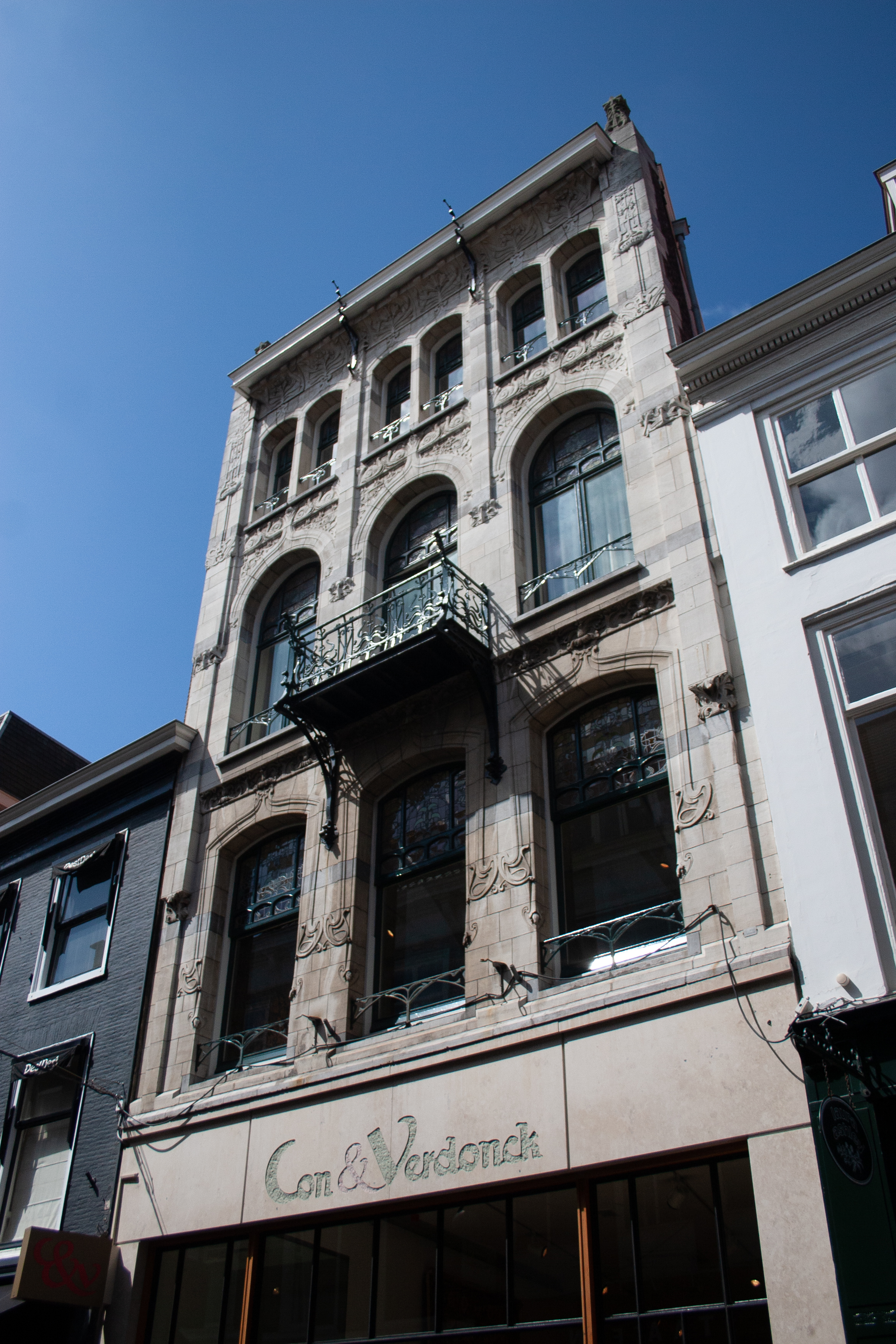 Winkel-woonhuis in Art Nouveau, gebouwd in 1897 naar ontwerp van de architect Johan Mutters Jr. in oorsprong voor magazijn Hagemeijer. Het pand is opgenomen in de straatwand met aaneengesloten bebouwing.