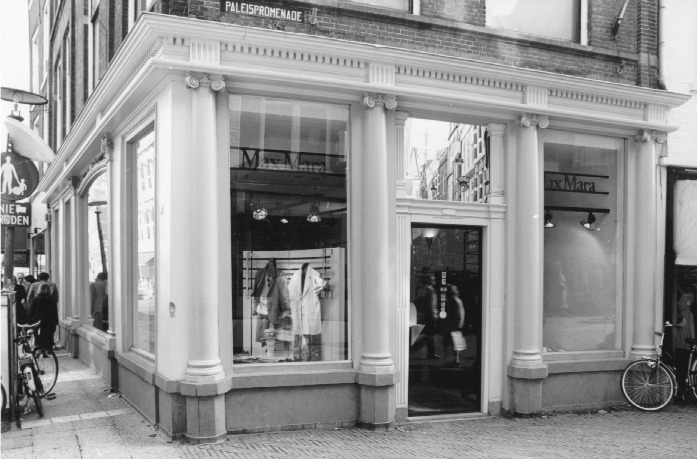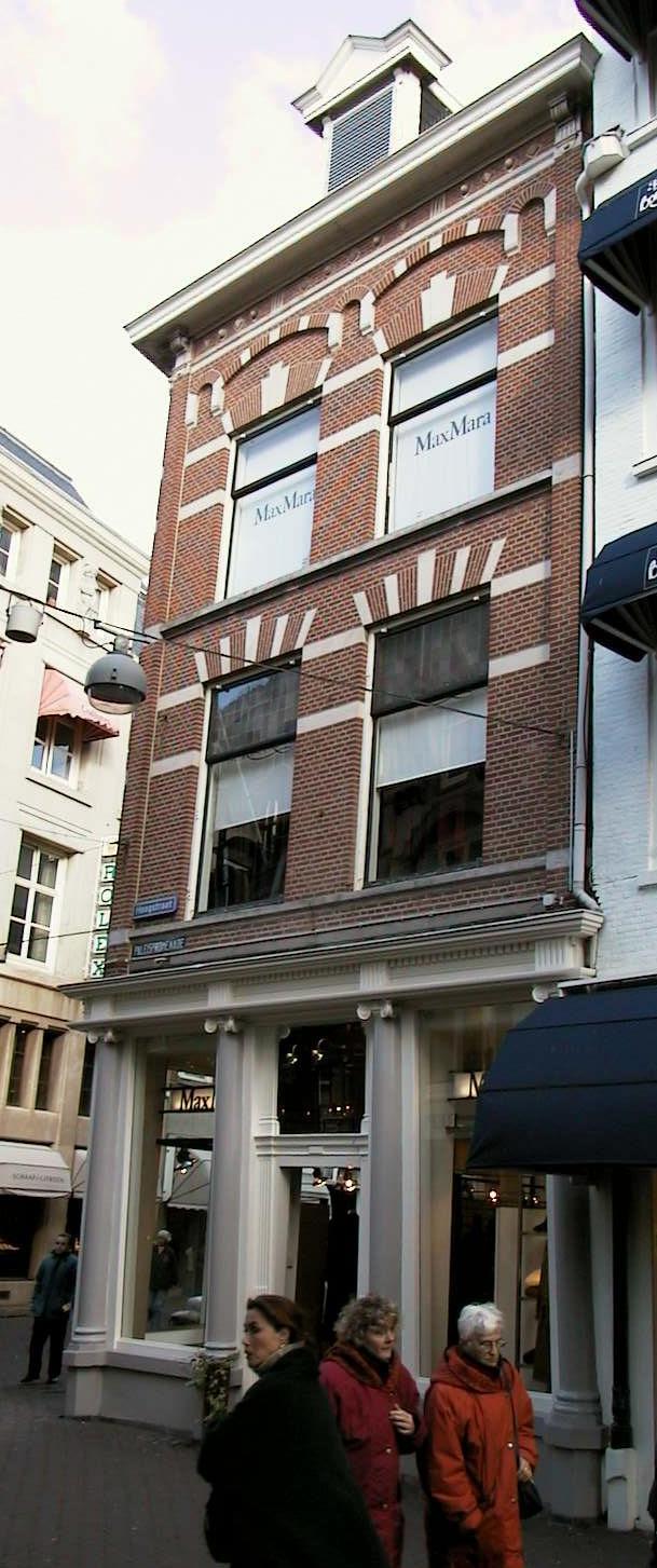 Pand op de boek van de Plaats, bestaande uit parterre met twee verdieping en. Breedte: twee vensterassen; diepte: vier vensterassen. Het in oorsprong wellicht 18de-eeuwse huis heeft gevels in neorenaissancestijl eind 19de eeuw. Fraaie houten winkelpui op hardstenen plint, geleed door Jonische halfzuilen; tegen de zijgevel met gecanneleerde pilasters, voorzien van gesneden Composiete kapitelen. De winkelpui heeft een kroonlijst met tandingen. De deur wordt omlijst.door gecanneleerde pilasters.