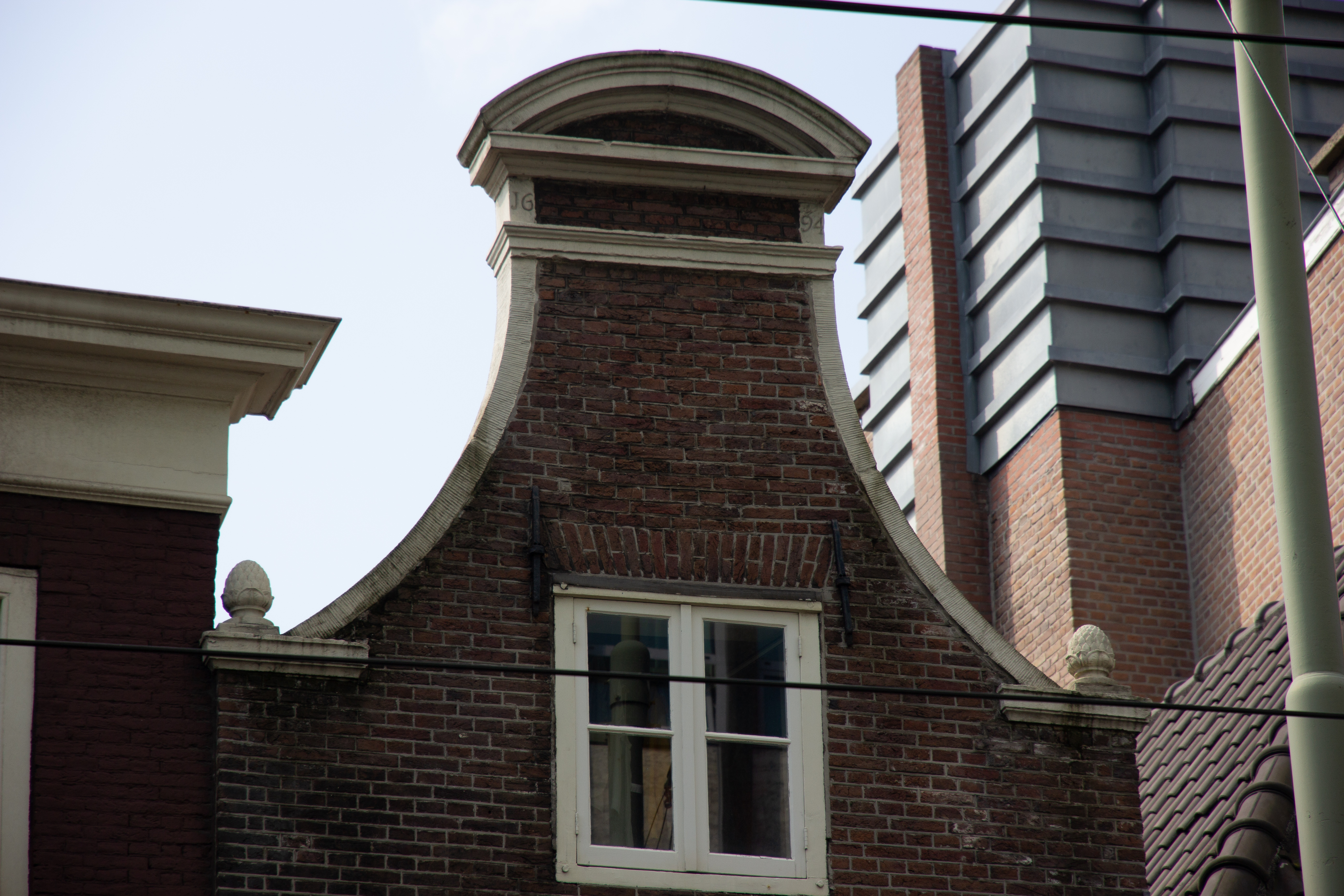 Het voorhuis heeft een met pannen gedekt zadeldak. De voorgevel is uitgevoerd in schoonmetselwerk en wordt beëindigd met een in zandsteen afgedekte klokgevel. De gevel is in de top gedateerd: 1694. De klokgevel wordt gesierd door twee pijnappels en een segmentvormig fronton. De kozijnen zijn op de eerste verdieping voorzien van negentiende-eeuwse schuiframen. In 1899 werd de huidige winkelpui aangebracht. Het achterhuis bestaat uit één bouwlaag onder een zadeldak.