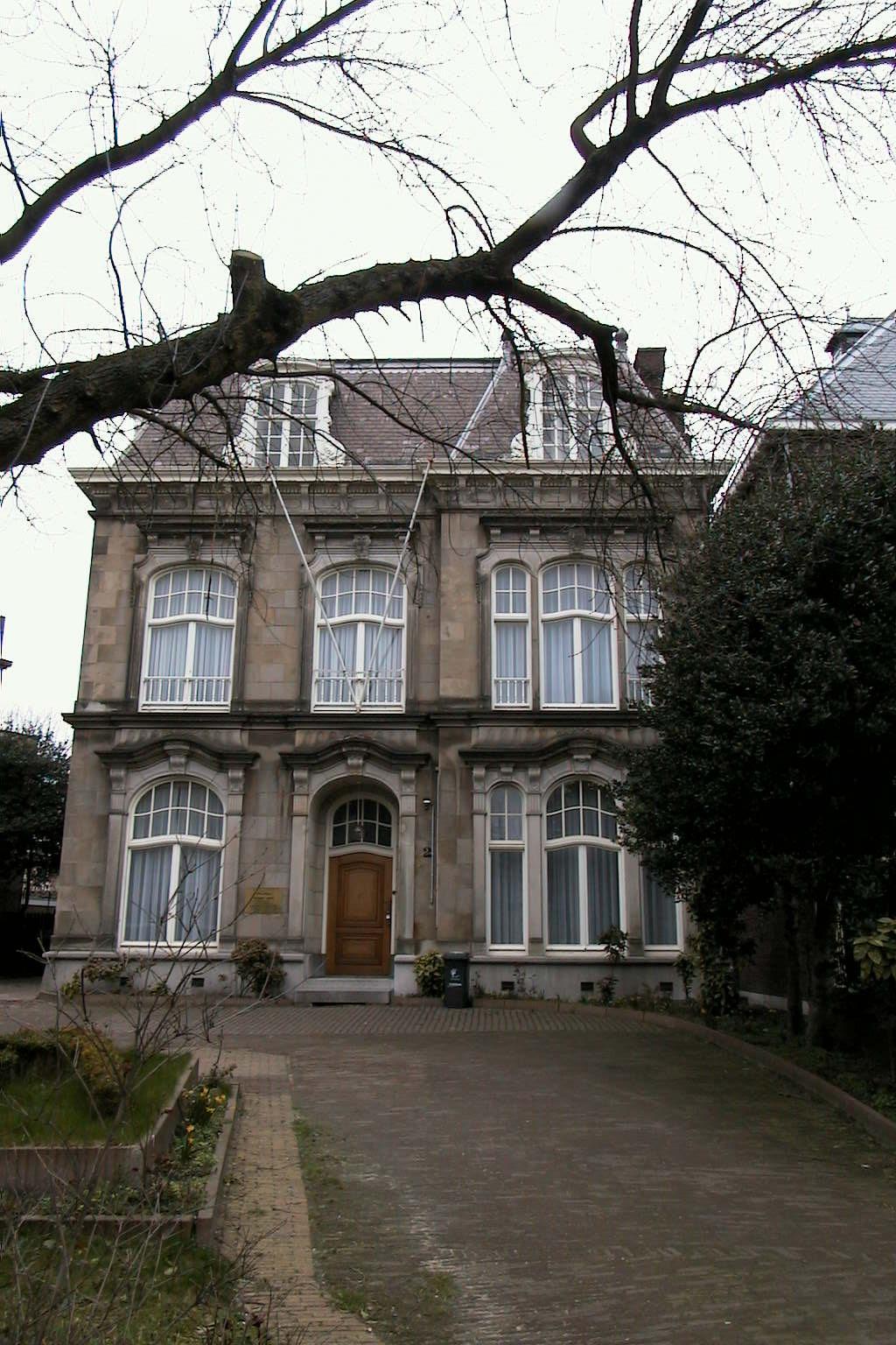 De voorgevel is bekleed met natuursteen en rijk gedecoreerd met in hoofdzaak aan de 18e-eeuwse Lodewijk XIV-stijl ontleende motieven. De bouwlagen worden van elkaar gescheiden door een geprofileerde waterlijst. De rechteras is als risaliet behandeld. De T-vormige vensters en de in een portiek gelegen paneeldeur bezitten hardstenen onderdorpels en versierde kroonlijsten op consoles; de kroonlijsten op de eerste bouwlaag zijn gebogen. Voorts zijn zij voorzien van gebogen middendorpels en in roeden onderverdeelde toogvormige bovenlichten, waarbij de horizontale roeden de gebogen lijn volgen van de middendorpel. De vensters op de tweede bouwlaag zijn voorzien van raamhekjes. Het risaliet bezit driedelige vensters. De linkerzijgevel is over de eerste twee vensterassen met natuursteen bekleed en in dezelfde trant als de voorgevel behandeld. Voor het overige is deze gevel van baksteen op een stenen plint, met in het midden een gebeeldhouwde klokgevel met siervazen, en een geprofileerde omlijsting en kuifstuk. De rechthoekige vensters met bovenlicht zijn geheel in glas-in-lood uitgevoerd en voorzien van een ronde ontlastingsboog met rijk gebeeldhouwd gevelveld. Het ronde venster bovenin is eveneens van glas-in-lood. Het gedeelte achter de klokgevel is voorzien van licht getoogde vijftienruitsschuifvensters. De kroonlijst rust op natuurstenen voluutconsoles, waartussen rechthoekige panelen en een tandlijst zijn aangebracht. Het dak bevat verscheidene dakkapellen in neo-Lodewijk XIV-stijl en bezit op de hoeken een pijnappelversiering. Aan de rechterkant bevindt zich een hoge gemetselde schoorsteen. De voortuin wordt van de straat gescheiden door een rijk geornamenteerd smeedijzeren hek in neo-Lodewijk XIV-stijl, op een voet van baksteen met hardstenen dekplaat. Aan de linker- en rechterzijde bevindt zich een eenvoudig ijzeren hek op een oplopende bakstenen voet.