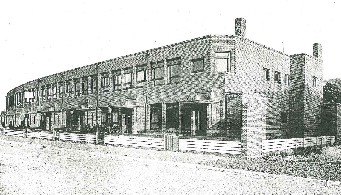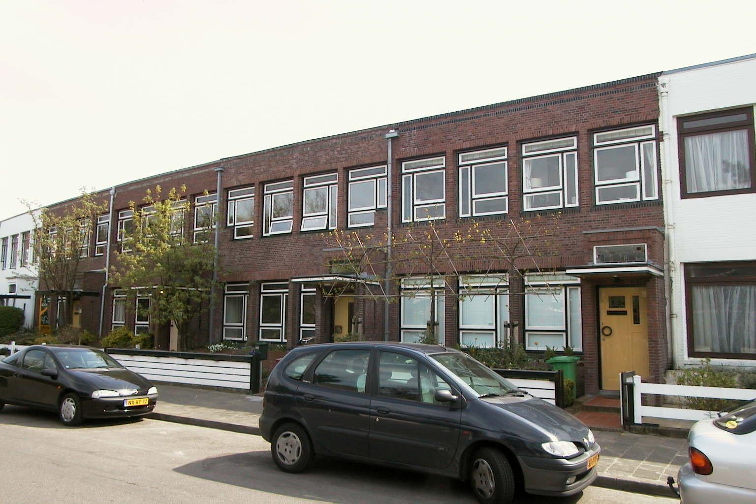 WONINGBLOK, bestaande uit negen herenhuizen, onderdeel uitmakend van het complex "herenhuizen Johan van Oldebarneveltlaan-Doornstraat te 's-Gravenhage", gebouwd in 1920 naar ontwerp van de architecten J. Duiker en B. Bijvoet.