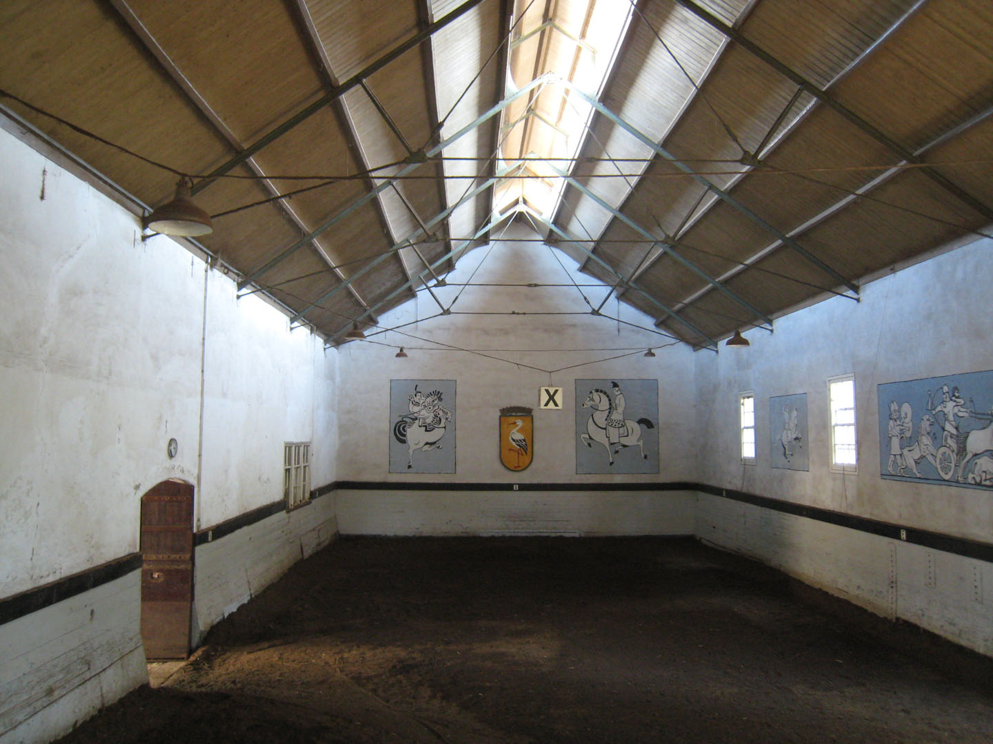 Aangebouwde L-VORMIGE STAL waarachter manege met tribune, welke in opdracht van Lodewijk-Napoleon als burger-manege zou zijn gebouwd. (Nog als zodanig in gebruik)