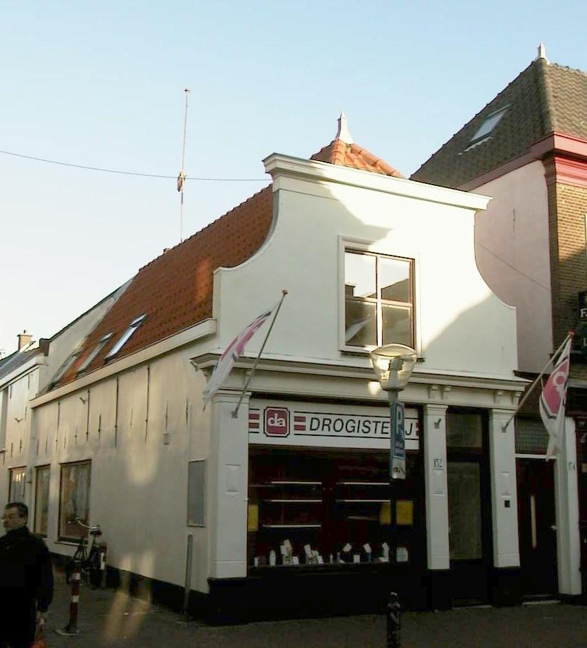 18de-eeuws pand, oorspronkelijk een Wagenvoerderswoning en -bedrijf annex stalhouderij, bestaande uit begane-grond en kapverdieping in het pannen wolfsdak. Het langgerekte, gepleisterde en witgesausde pand heeft een lijstgevel met ingezwenkte zijkanten, een gewijzigde, laat-l9de-eeuwse winkelpui en een bovenvenster met zesruitsschuifraam. Achter het pand bevindt zich het door een pannen zadeldak gedekte oorspronkelijke stalgedeelte, genummerd: Marcelisstraat 1-3.