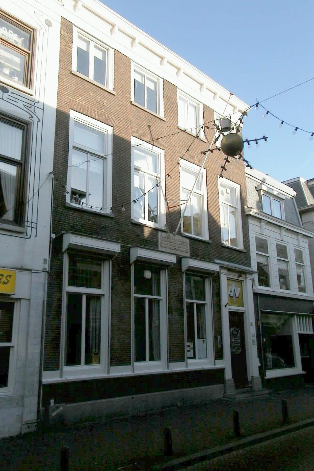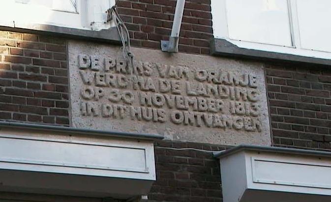 Laat-18de eeuws woonhuis ter breedte van vier vensterassen, bestaande uit parterre, verdieping en kapverdieping in het afgeknotte dak. De bakstenen lijstgevel heeft klezoortjes en harstenen vensterdorpels. De vensters bezitten T-ramen en in de kapverdieping in twee van de vier vensters stolpramen. De gevel heeft een hardstenen plint en een stoep van twee treden. De deur met bovenlicht is gevat binnen een omlijsting van houten pilasters op hardstenen neuten en een hoofdgestel. Het gewijzigde hoofdgestel van de gevel heeft eenvoudige consoles onder de lijst. In de gevel bevindt zich een moderne gevelsteen met het opschrift: "De prins van Oranje werd na de landing op 30 november 1813 in dit huis ontvangen".