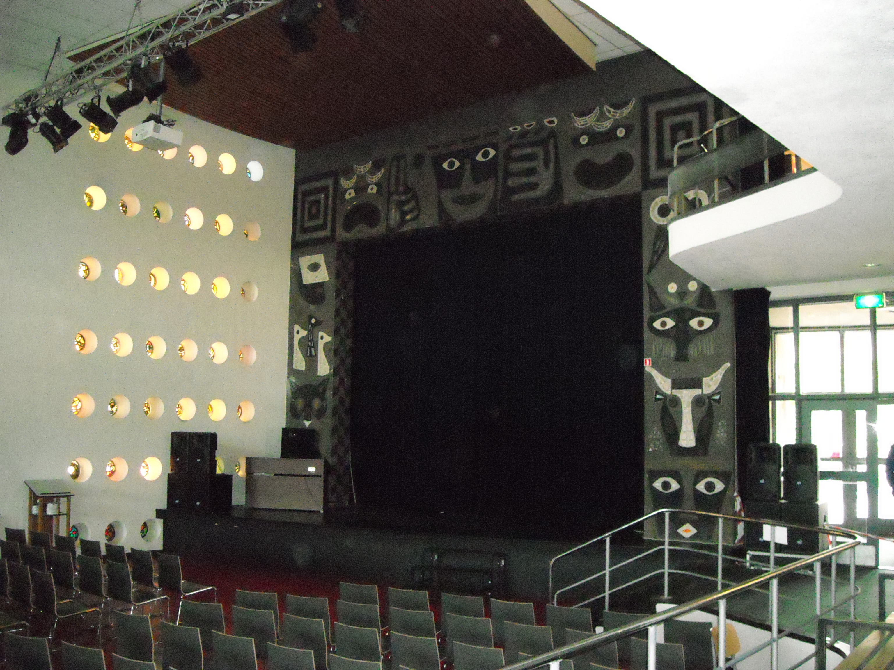 - de kunsthistorische waarde vanwege de aanwezigheid van kunstwerken, zoals de voorstellingen in betonmozaïek, de leien tegeltableaus, de beschilderingen van het toneelfront en de glas-in- loodramen van kunstenaar W.J. Rozendaal;