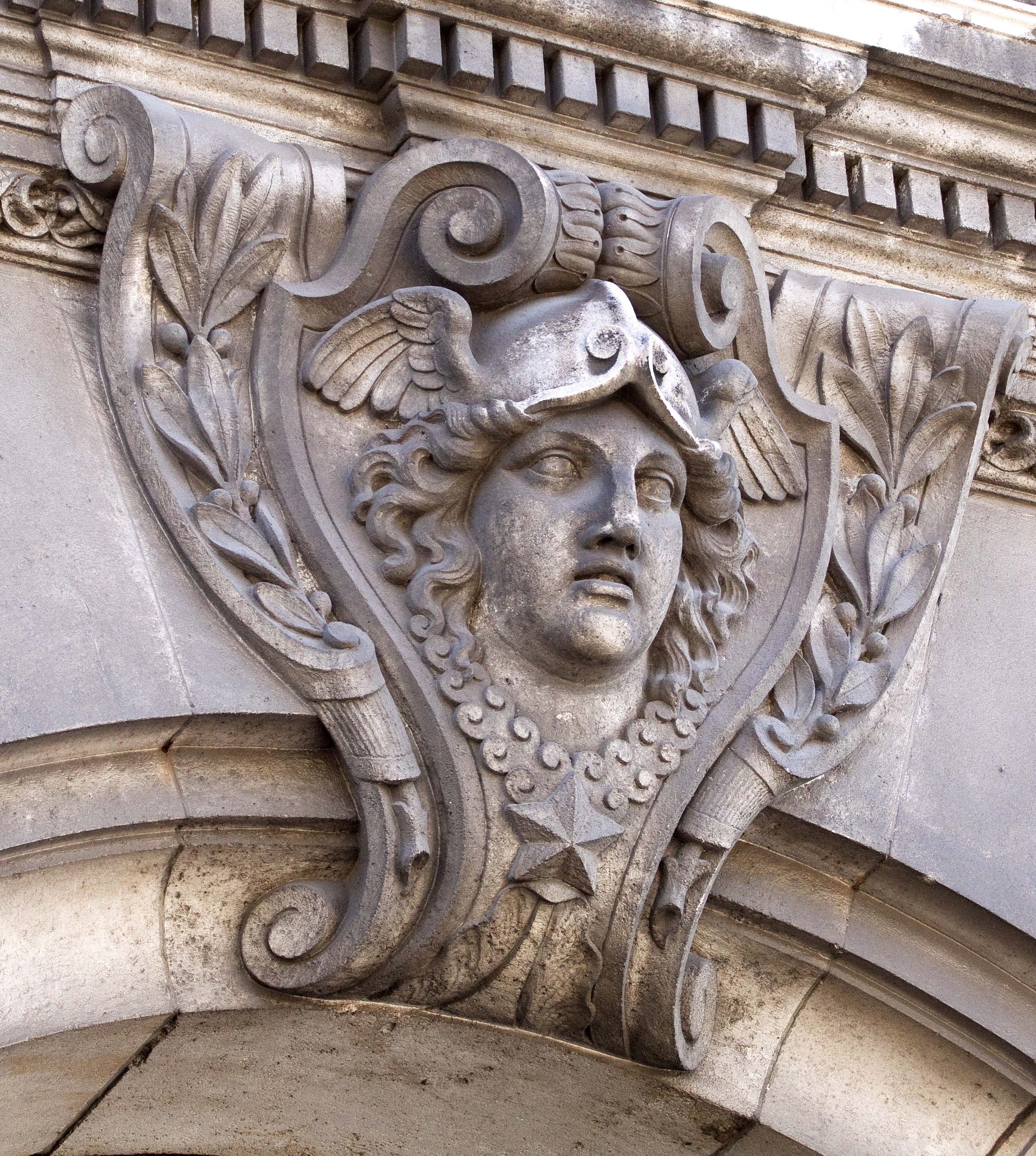 Het in baksteen opgetrokken gebouw op rechthoekige plattegrond bestaat uit een souterrain, drie bouwlagen en een hoog, omlopend schilddak, gedekt met leien en bekroond door vierkante schoorstenen. De breedte van de gevel aan de Kneuterdijk bedraagt negen vensterassen; de breedte van de gevel aan de Lange Vijverberg is dertien vensterassen. Beide gevels bezitten brede middenrisalieten met boven de kroonlijst attiekvormige, brede dakkapellen, gedekt door frontons met cartouches. In het dak bevinden zich houten dakkapellen met kruiskozijnen en frontons. De verdiepingen worden gescheiden door geprofileerde natuurstenen waterlijsten; natuursteen is ook toegepast voor de vensterlateien, de omlijsting van de hoofdingang, het brede balkon tegen de gevel aan de Lange Vijverberg en de gebeeldhouwde onderdelen. Alle vensters bezitten ontlastingsbogen en kruiskozijnen; boven het driedelige middenvenster van de eerste verdieping is een gebeeldhouwd wapenschild met vrouwefiguren aangebracht. De hoofdingang vertoont pilasters en een boogomlijsting in bossagewerk, als sluitsteen fungeert een gebeeldhouwde Hermeskop en het bekronende fronton bezit een sculpturale vulling. Het brede balkon op de eerste verdieping van de middenrisaliet in de gevel aan de Lange Vijverberg bezit een gebeeldhouwde balustrade en wordt gedragen door natuurstenen consoles. De gevels bevatten voorts sierankers. Het interieur bevat onder meer een vestibule met trap, een imposante lokethal die wordt voorafgegaan door een voorhal van waaruit men links het trappenhuis bereikt, alles uitgevoerd in marmer en kostbare houtsoorten in neo-Lodewijk XIV-stijl. De grote lokethal bezat oorspronkelijk een hoge vide die bij een verbouwing in de jaren zeventig is dichtgezet. De vloeren van de voorhal, lokethal en trappenhuis zijn uitgevoerd in marmer; dit materiaal is ook toegepast voor de benedendelen van de pijlers en de zuilen met hun Corinthische kapitelen rond de lokethal. De wanden zijn witgepleisterd en het stucwerk vertoont neo-Lodewijk XIV-vormen. Het trappenhuis bezit eveneens gepleisterde wanden en stucversieringen in deze stijl, die ook is aangewend voor de balusterleuning van de trap.
