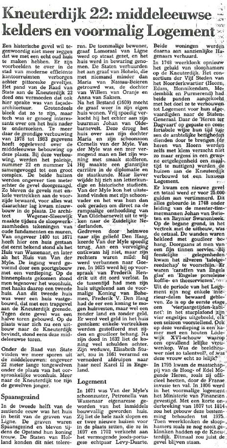 In het laatste kwart van de 17e eeuw opgetrokken als HUIS van de heren Van Wassenaar, diende van 1748-1795 als hotel van de afgevaardigden van de vijf Noord-Hollandse steden, herbergt thans het Ministerie van Financien. Fors gebouw van eenvoudige doch verzorgde architectuur met natuurstenen deuromlijsting. Inwendig in enkele vertrekken nog betimmeringen en stucversieringen. Aansluitend het huis, dat Johan van Oldenbarneveldt in 1612 begon te bouwen in de trant van Hendrick de Keyser, oorspronkelijk met twee topgevels, thans met een rechte kroonlijst en attiek.