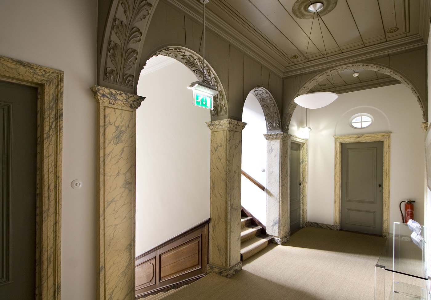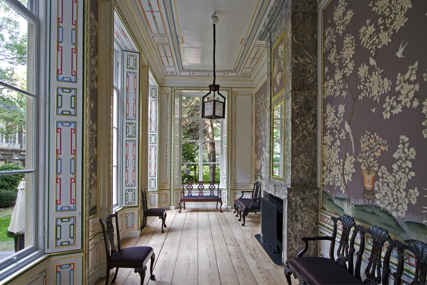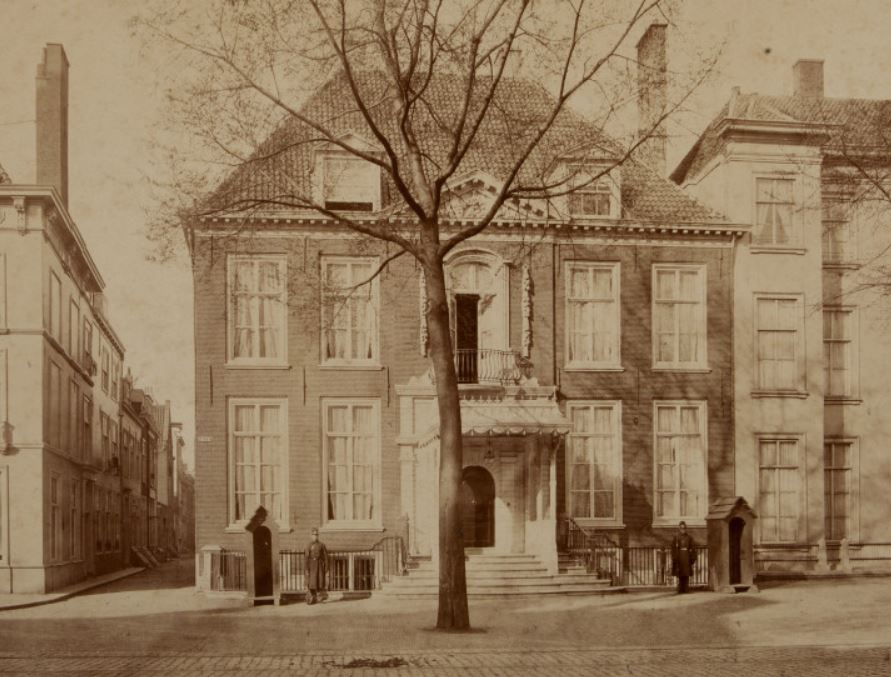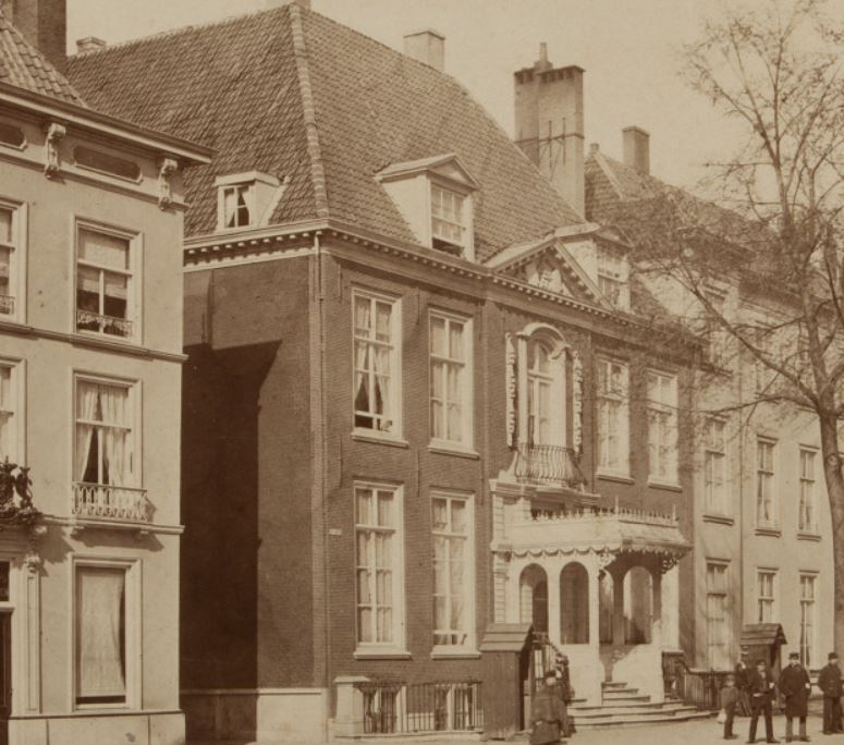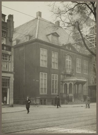 Voornaam WOONHUIS uit pl.m. 1650 met rijk versierde middenpartij - zeer belangrijk 18e-eeuw interieur - aansluitend tuinmuur langs de Hertogstraat.