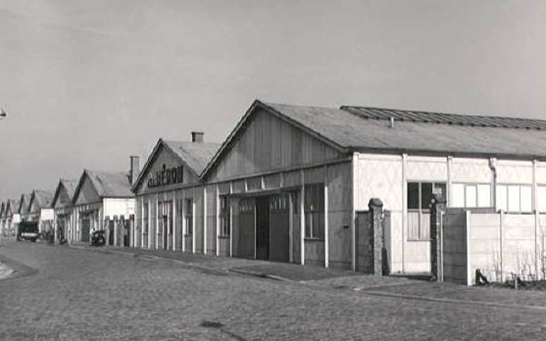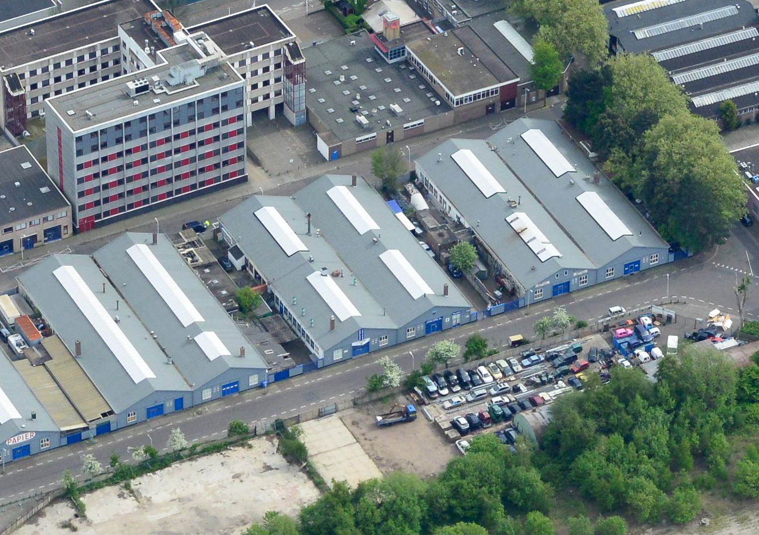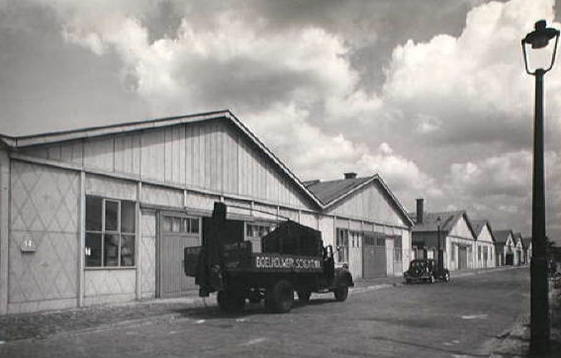 Serie bestaande uit drie blokken industriehallen die rug-aan-rug gekoppeld en per twee geschakeld zijn. In totaal zijn het twaalf van oorsprong identieke hallen van 24 x 16 meter. Gevel en constructie vallen samen en zijn geheel uit geprefabriceerde schokbetonnen elementen opgebouwd. De van oorsprong in onbehandeld beton afgewerkt gevels (nu voorzien van een verflaag) hebben een wiebertjes-patroon in de gevelpanelen. De hallen worden overspannen door zogenaamde Belgische spanten. Vaak werden deze in staal uitgevoerd, maar hier is ook dit onderdeel van beton. Aan de voorzijde van de hallen, ter weerszijden van de centrale toegangsdeuren, liggen kleine kantoorruimten. Het dak bestaat uit panelen met veel voorkomende cassette-indeling en in de top van oorsprong draadglazen panelen voor het benodigde daglicht. Aan het herstel van handel en industrie werd na de oorlog hoge prioriteit gegeven. De getroffen bedrijven moesten zo snel weer aan de slag en daarvoor was huisvesting van het allergrootste belang. Met behulp van een stimuleringsprogramma van het Rijk schoot de gemeente ondernemers te hulp door deze universele industriehallen aan te bieden. De drie paar industriehallen uit 1949-1950 zijn het vroegste voorbeeld van door de gemeente gerealiseerde prefabbouw, die door Gemeentewerken ook op andere plekken in de Binckhorst zou worden toegepast.
