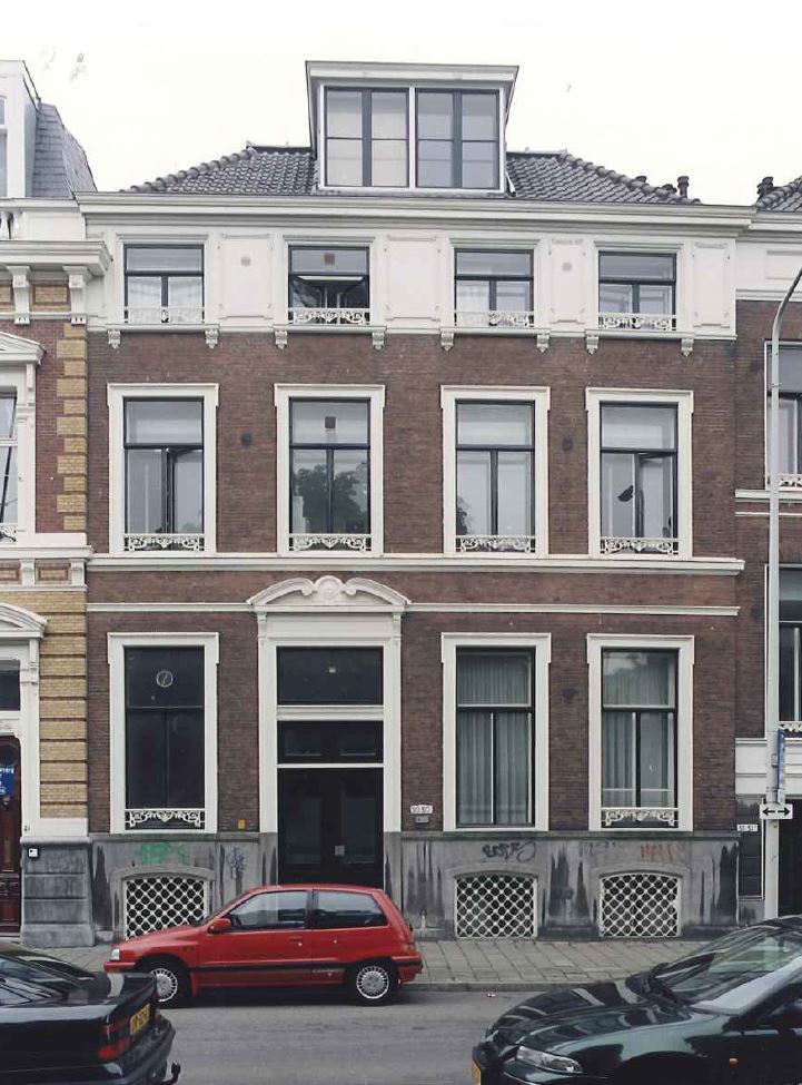 Pand met bakstenen lijstgevel ter breedte van vier vensterrassen, ca. 1874. Met hardsteen bekleed souterrain. Deur met als bekroning een gebroken voluutfronton. Vensters met gietijzeren raamhekjes. Gepleisterde bovenverdieping met raamhekjes op consoles. Souterrainvensters met decoratief roosterwerk.