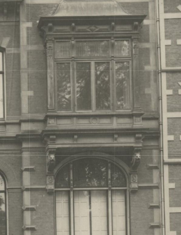 H.W.A. Croiset van Uchelen. Breedte vijf vensterassen; hoogte parterre met verdieping. Hardstenen plint, voor het overige bakstenen lijstgevel met gepleisterde sierdelen. De linker travee terugliggend. De rechter vensteras risaleert en wordt bekroond door een puntgevel versierd met maskers, negblokken, hoekblokken, consoles en frontons. Erker op voluutconsoles met leeuwekoppen. Deuren uit de bouwtijd. Getoogde parterrevensters met maskersluitstenen.