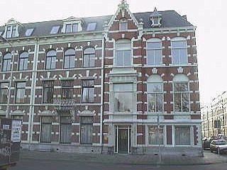 Hoekpand in neorenaissancestiji, gedateerd 1887. Breedte drie venster- assen, hoogte parterre met twee verdiepingen. De linker vensteras risaleert en heeft een puntgevel. Geglazuurde baksteen met natuurstenen sierdelen. Sierankers. Hardstenen plint; ingang en venster daar boven geflankeerd door pilasters met rolwerkornament.
