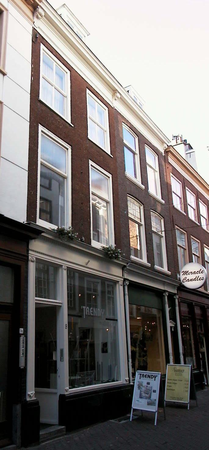 Pand uit de 17de of 18de eeuw ter breedte van twee vensterassen, met twee verdiepingen en schilddak met dakkapel. Eenvoudige lijstgevel, van karakter tweede kwart 18de eeuw met onder de kroonlijst twee gesneden consoles in Lodewijk XIV stijl. Driedelige houten winkelpui met verdiepte en met snijwerk versierde penanten. In de tweede verdieping vensters met vierruitsschuiframen.