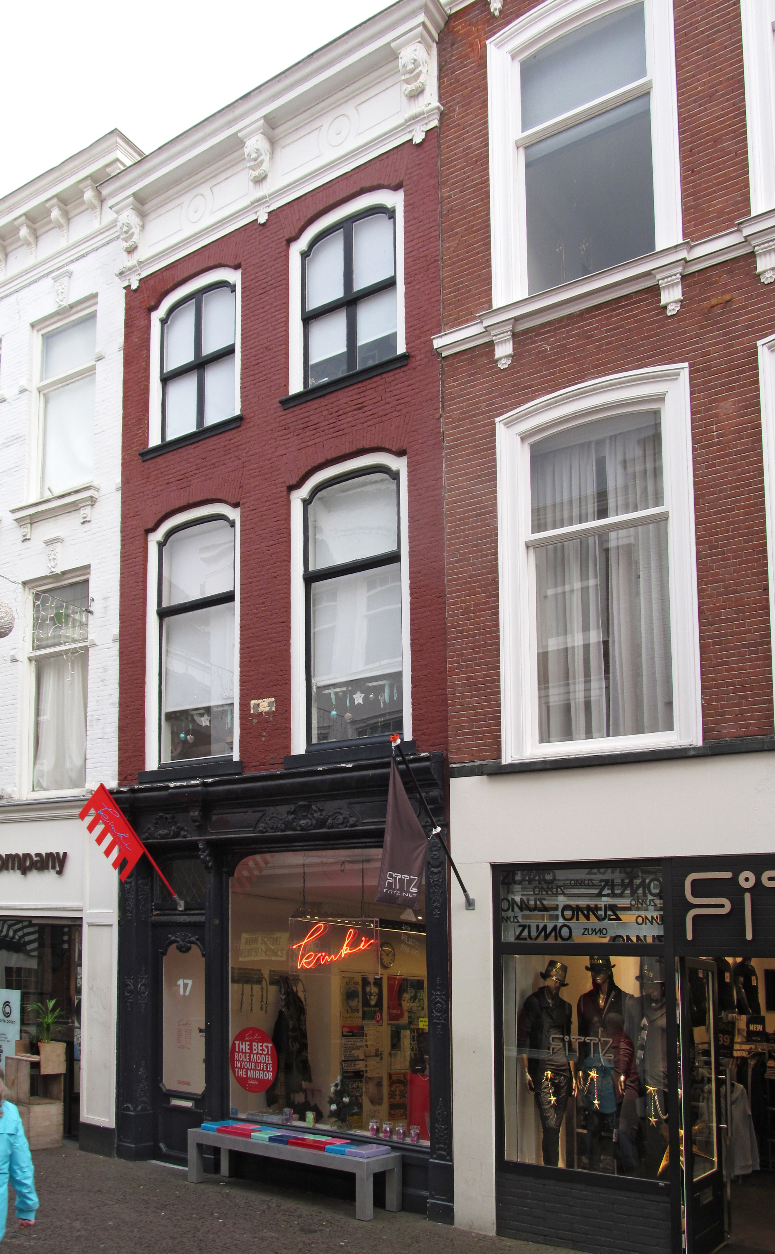 De Korte Poten is als sinds de zestiende eeuw een straat waar bedrijvigheid en handel waren geconcentreerd. Rond 1850 doet het winkelconcept zoals wij dat nu kennen haar intrede en worden veel woonhuis- en bedrijfspuien in de bestaande bebouwing vervangen door winkelpuien. De voortschrijdende cityvorming van de binnenstad en daarmee het alsmaar belangrijker worden van de winkelfunctie voor de Korte Poten zorgt ervoor dat vanaf 1875 veel van de oude panden wordt gesloopt of zodanig verbouwd dat er sprake is van een ware metamorfose. Het pand Korte Poten 17 is een goede representant van de nog bewaard gebleven oudere bebouwing van voor 1875 met een goed verlopen transformatieproces. De licht op vlucht staande voorgevel is een in metselwerk opgetrokken drielaagse lijstgevel uit de eerste helft 18e eeuw. In de hoekverbanden van de gevel zijn klezoortjes toegepast. De kozijnen op de verdiepingen met de sierlijke schouderboogvormige beëindiging dateren uit de bouwtijd. De gevel wordt afgesloten met een houten kroonlijst, die waarschijnlijk uit de tweede helft van de 19de eeuw dateert. In 1901 is de huidige in eclectische stijl vormgegeven winkelpui aangebracht.