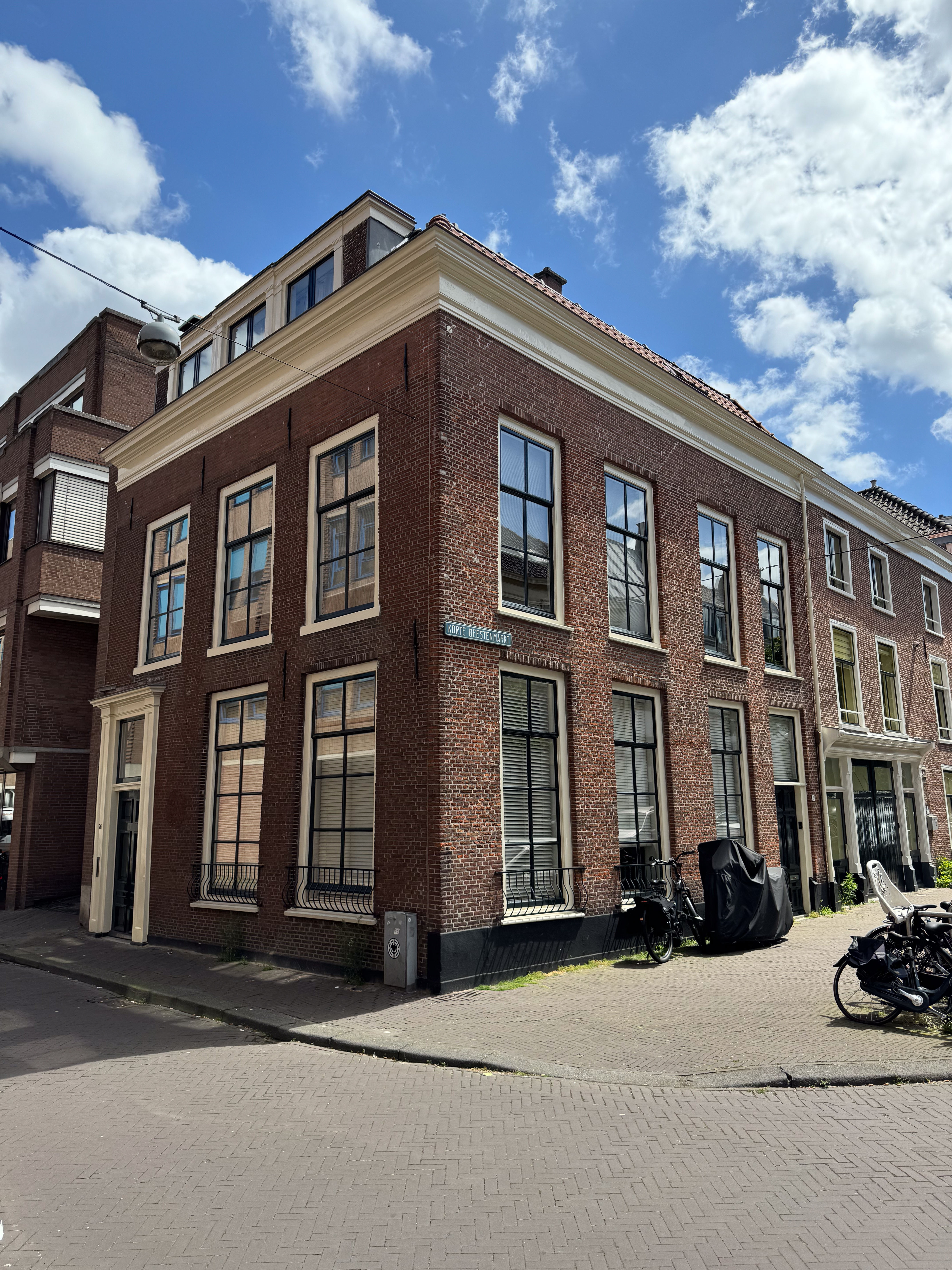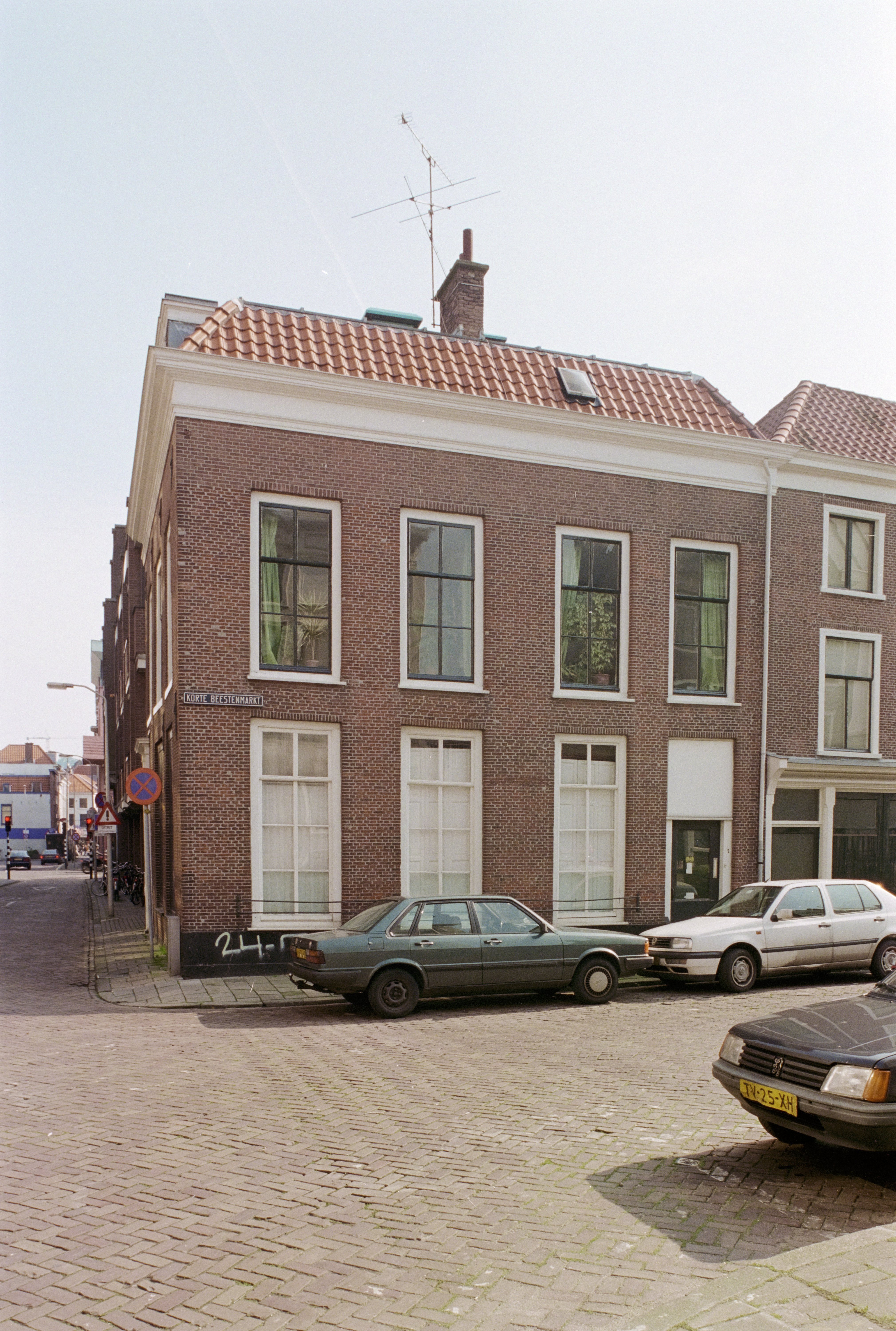 Pand bestaande uit parterre met hoge verdieping en omlopend, afgeknot schilddak, 18de eeuw. Het vier assen diepe en drie assen brede hoekpand heeft een houten kroonlijst boven beide gevels, vensters met acht- en zesruitsschuiframen en aan de voorzijde een brede dakkapel met drie door pilasters gescheiden vensters. Deur met onversierd bovenlicht binnen een omlijsting door verdiepte pilasters met hoofdgestel. De deur heeft een versiering met panelen.