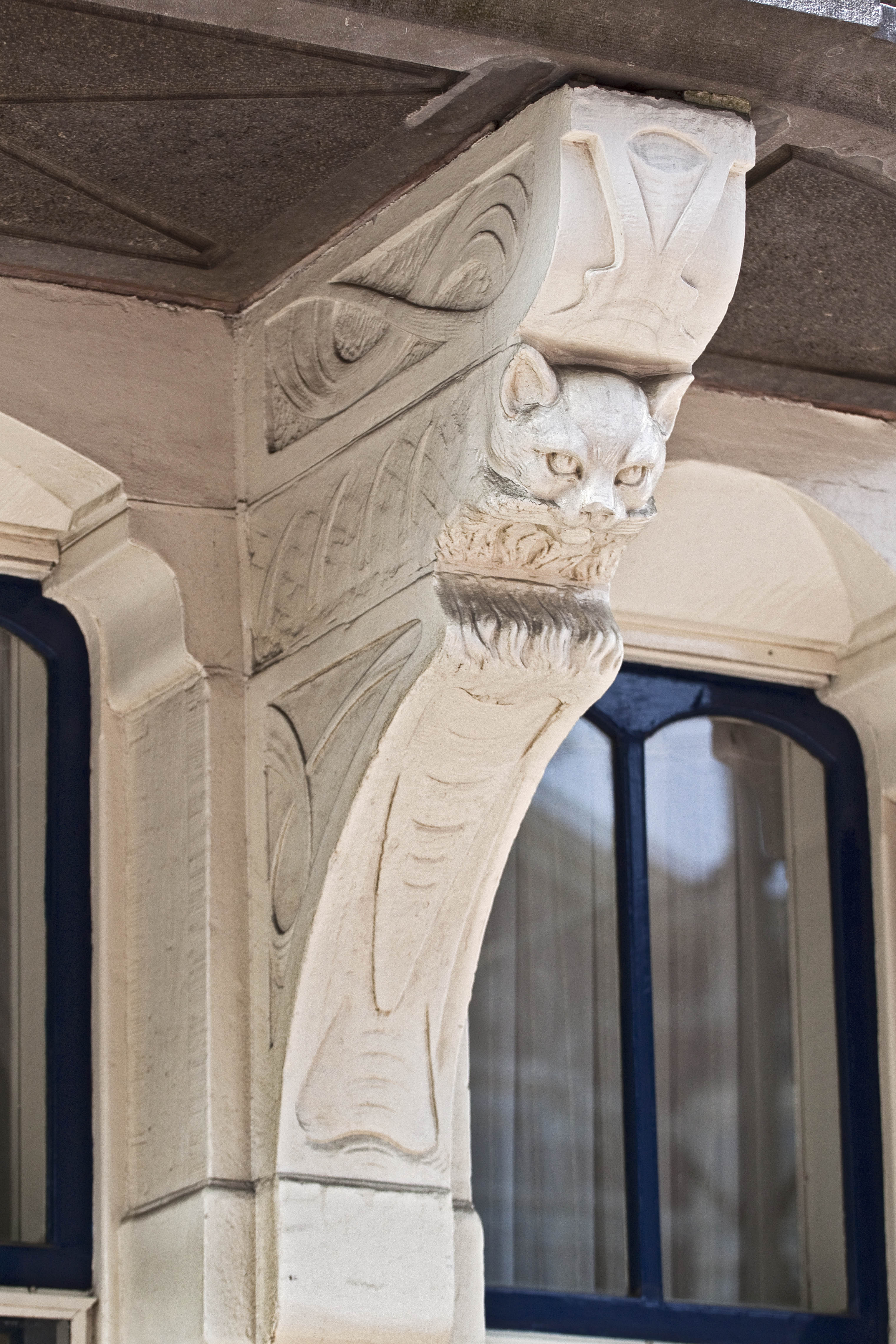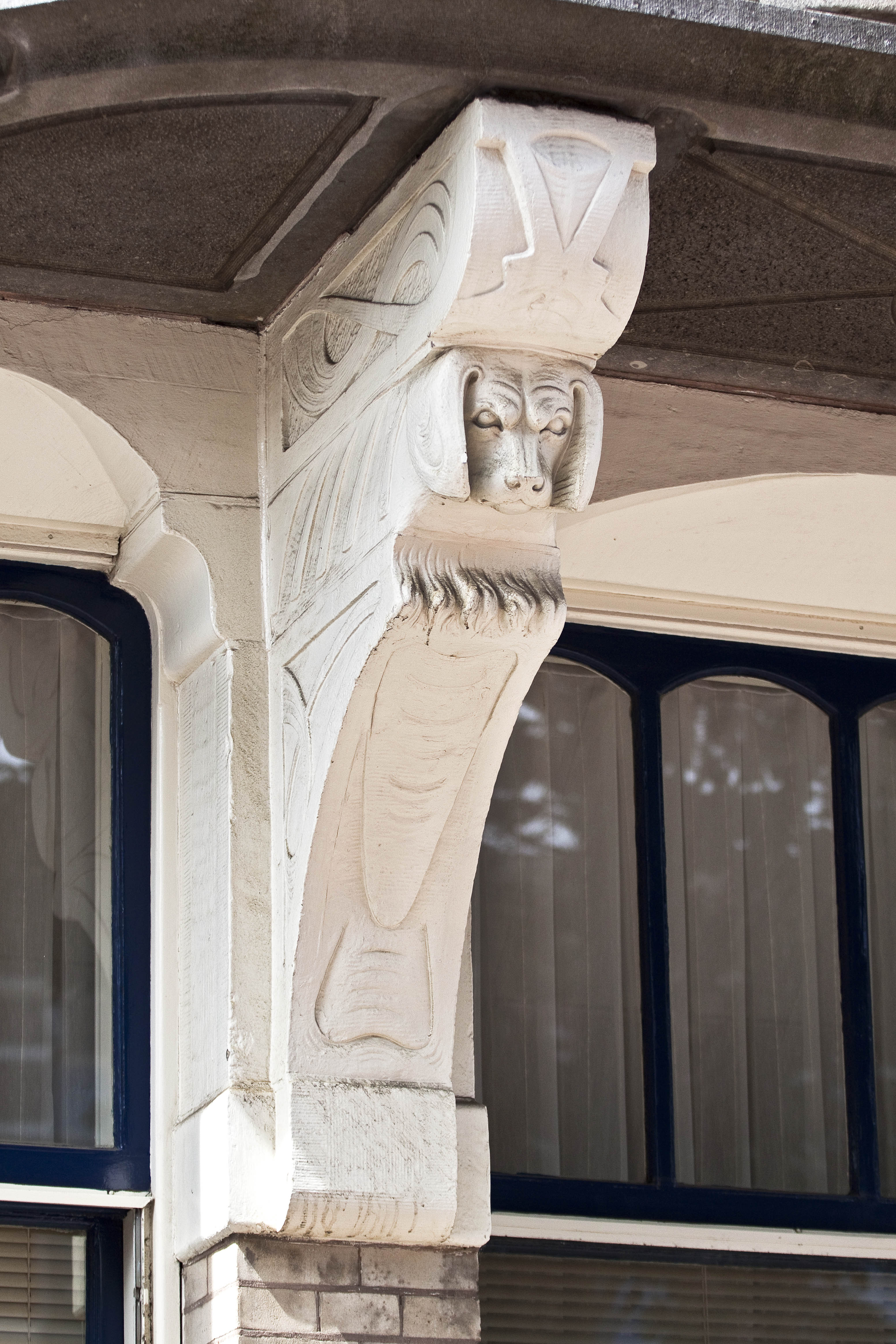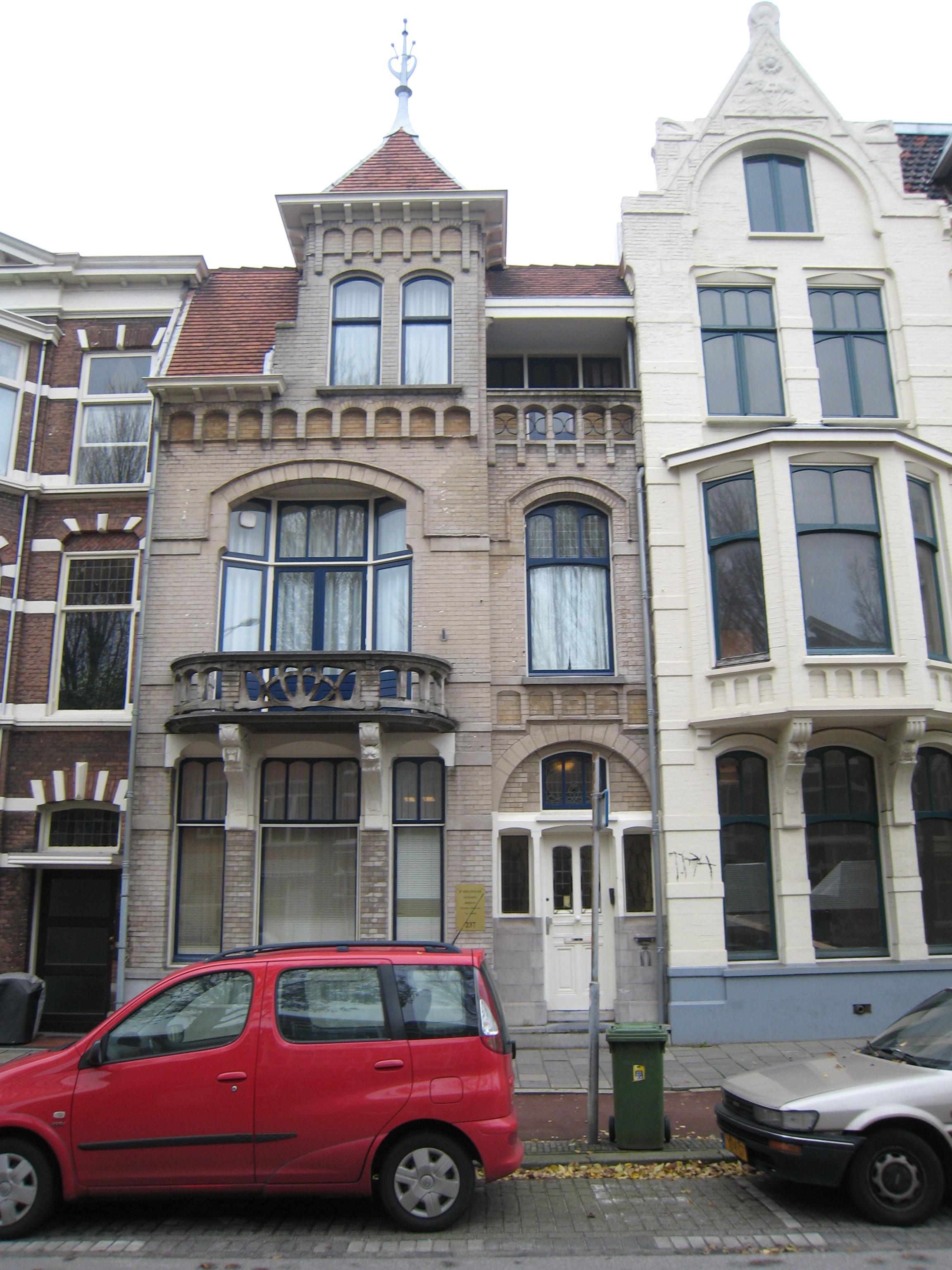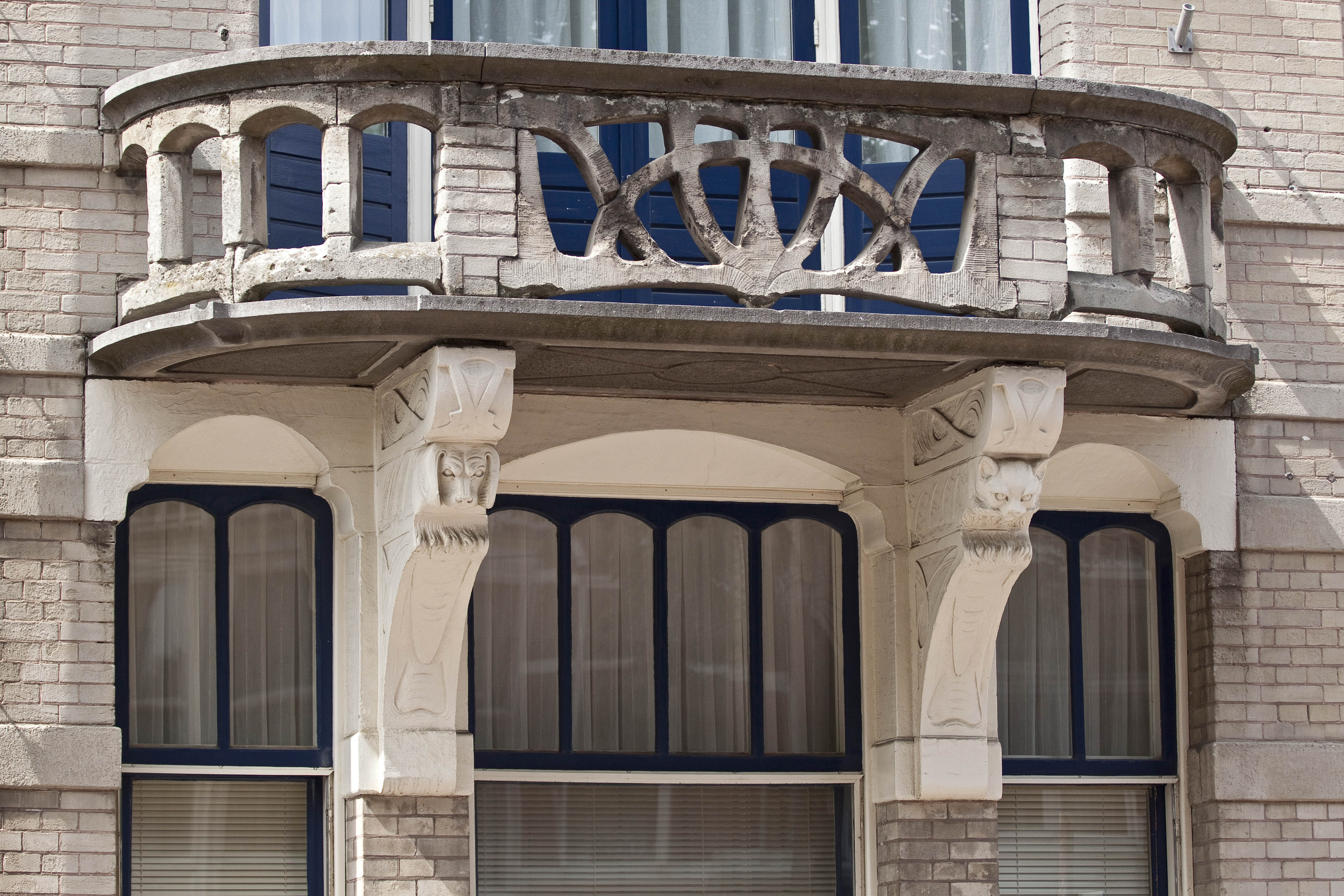 Herenhuis uit het begin van de 20e eeuw, waarvan de gevel met name in de decoratieve behandeling van het balcon met consoles Art-Nouveau-vormen vertoont.