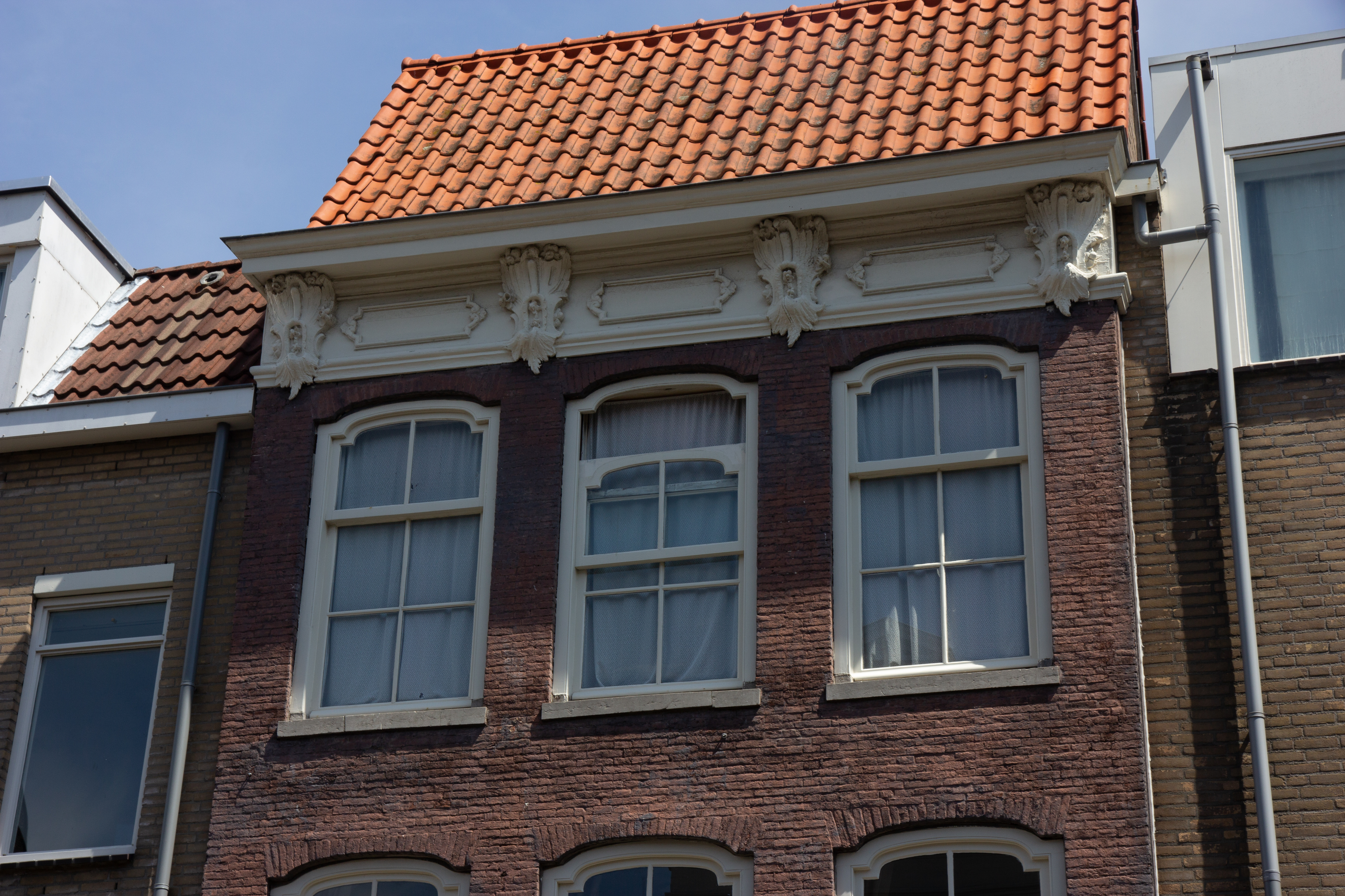 Pand met gevel met kroonlijst op rococo-consoles.